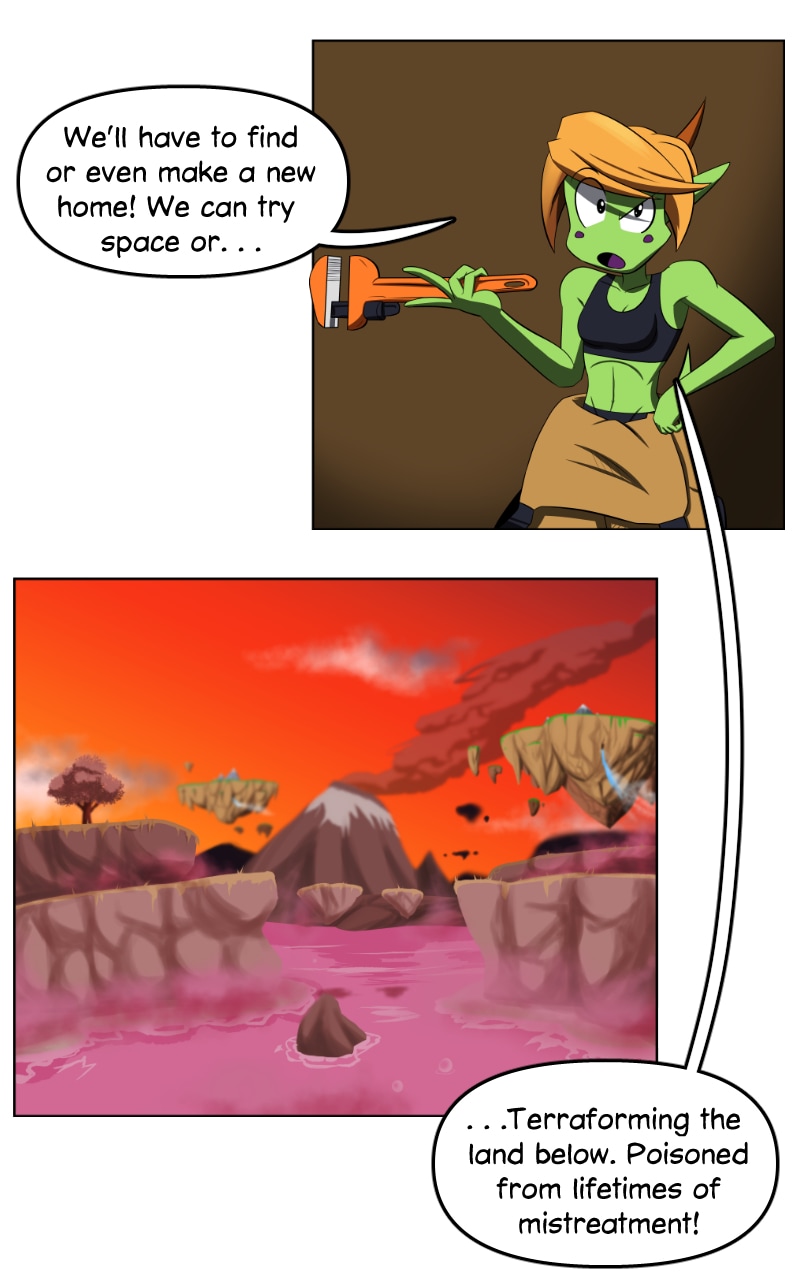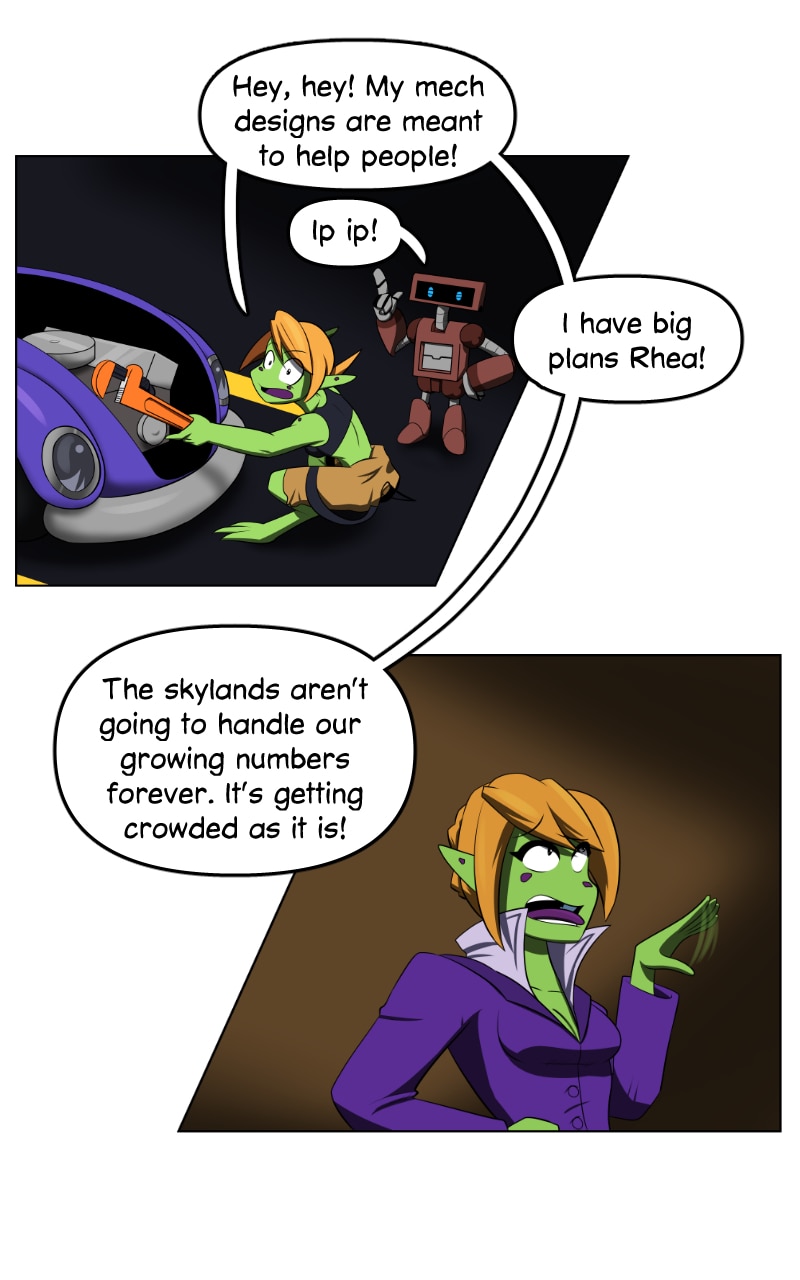 Cora has dreams of helping the Skylands and the polluted land below. But all her time is taken up helping out at her parent's car shop.