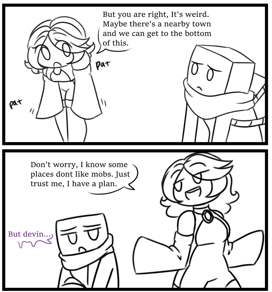 Devin, a human girl trapped in Minecraft, and her enderman friend, Exio, embark on a quest to find a way back home. They are tasked by the minor god Vuco to retrieve powerful relics called TerraRestores from the enigmatic Builders, an ancient civilization. As they unravel the mysteries of The Builders, they face challenges, forge alliances, and grapple with the responsibility of wielding TerraRestores' power to restore what was lost.