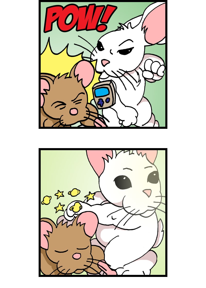 Lil Bunny Foo Foo gives the field mouse some hands.