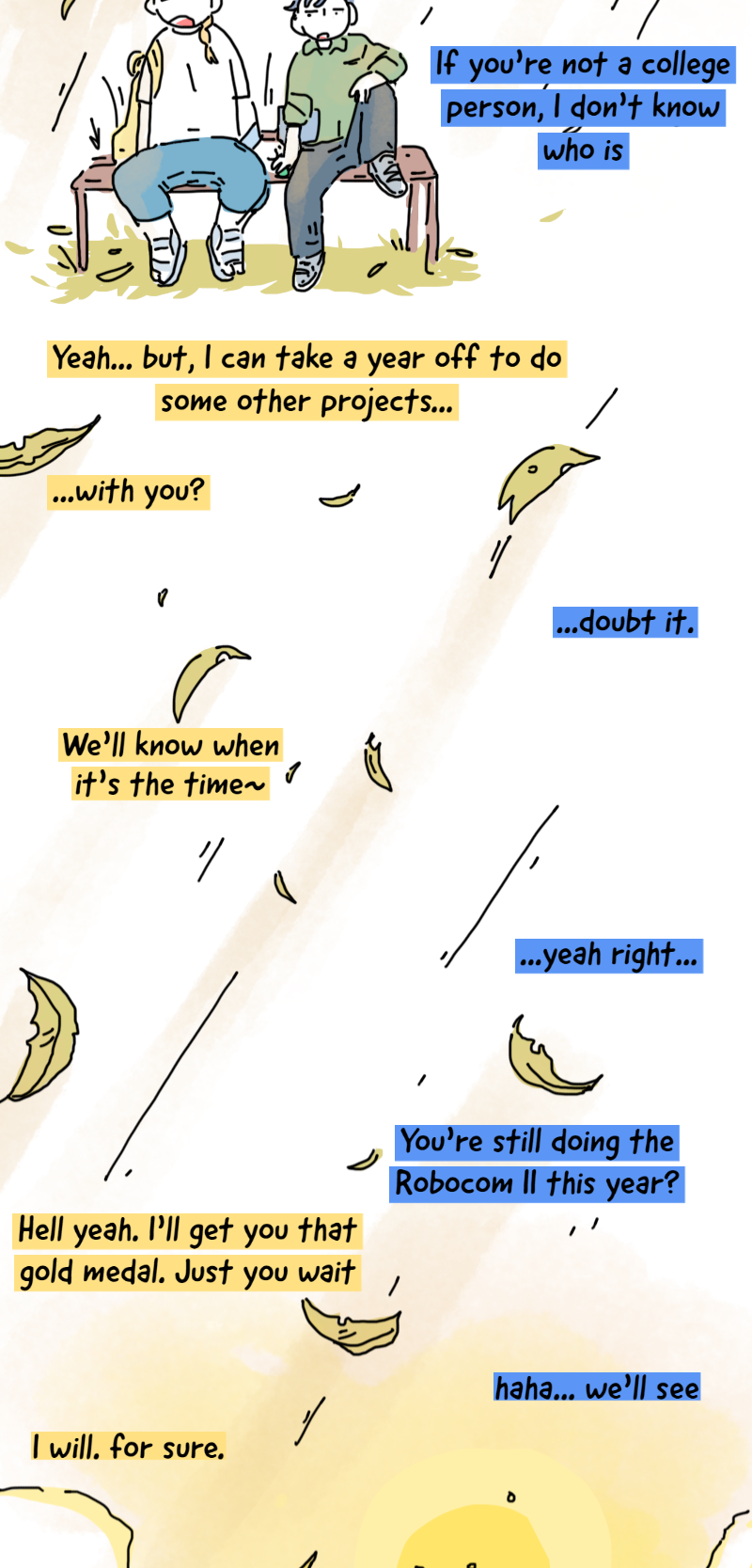 As a competitive student, after failing her entrance exam to the top high school in town, May loses her confidence. On the first day of school, she meets a girl who will get her into a new world, where she learns to open up to herself and about the bigger world outside of school credits and grades.