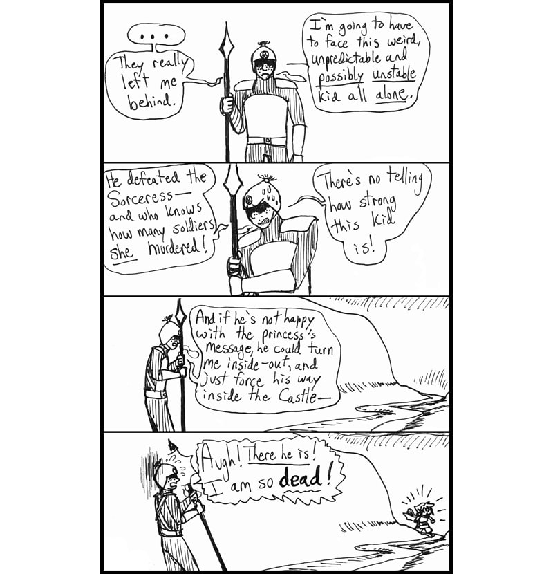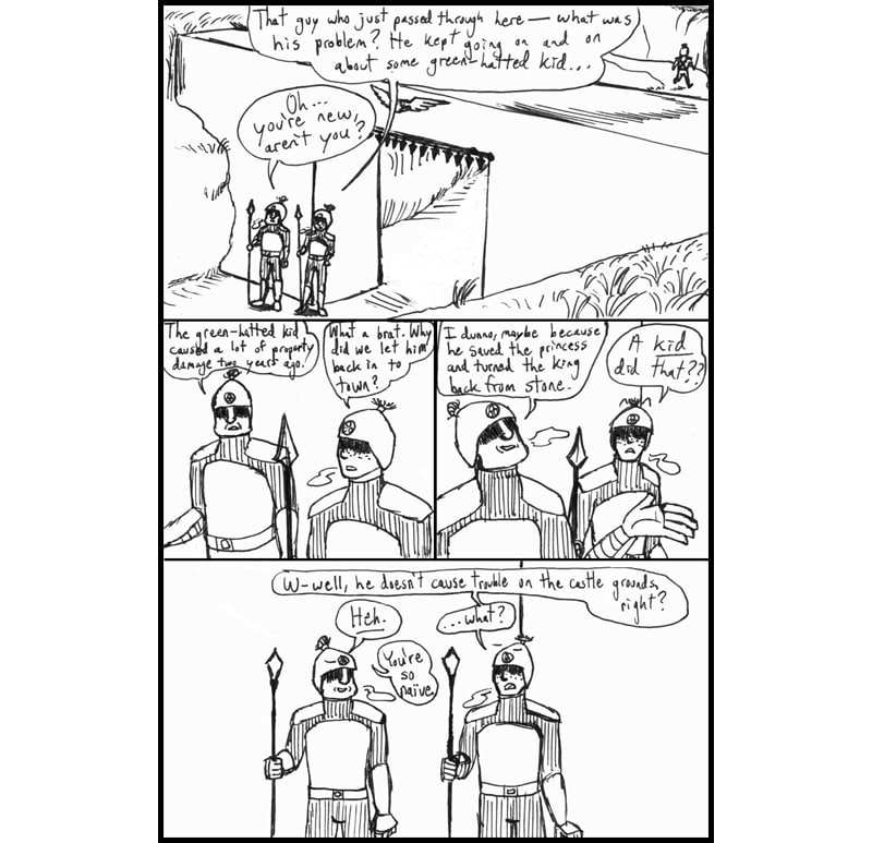 In "Triforce of Power," a Legend of Zelda fancomic, Ganondorf explores Hyrule with 12-year-old Link as a guide. While Ganondorf learns more about the strange land's peoples and secrets, Link seeks his fortune and goes on quests for Princess Zelda.