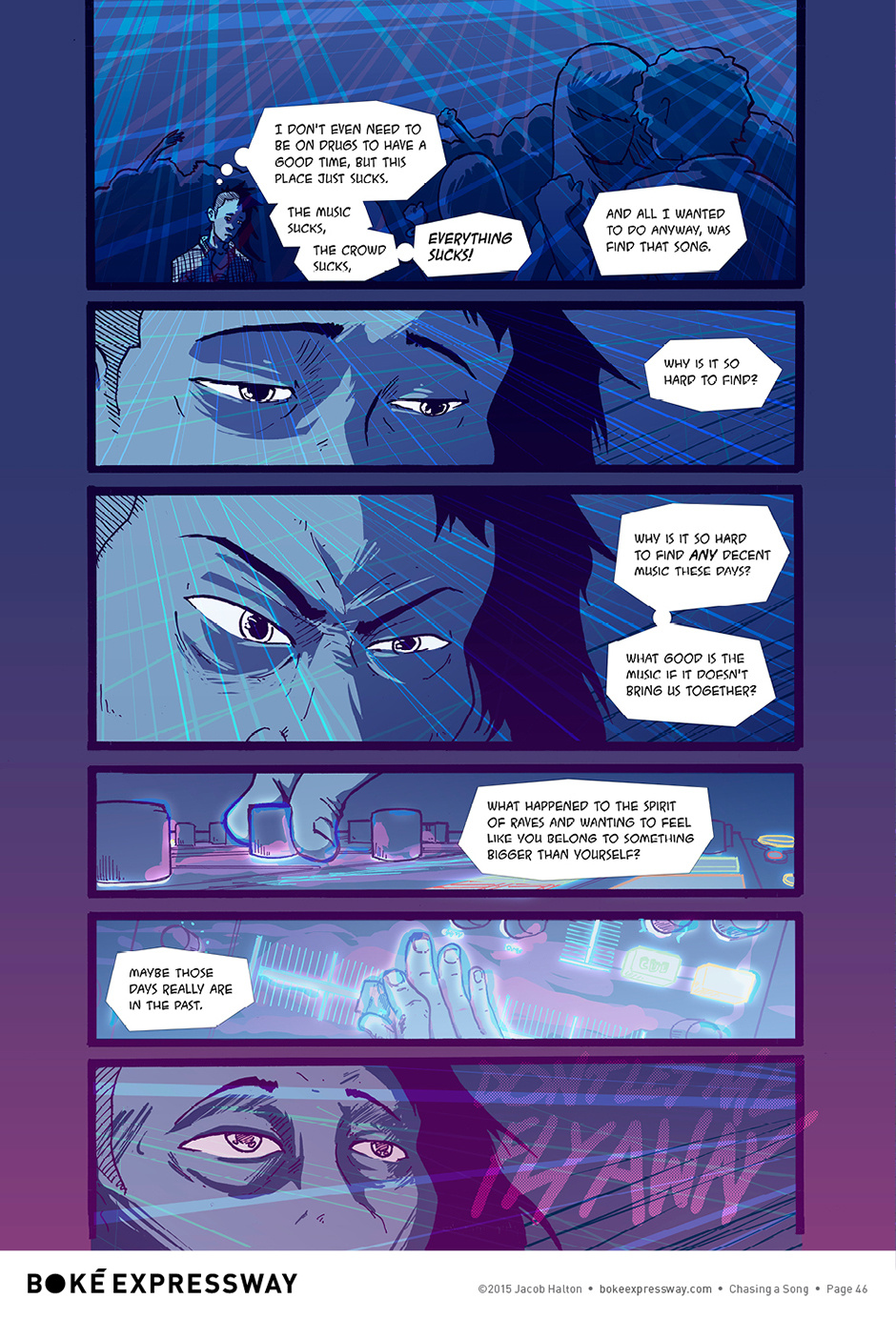 The first chapter of the Boké Expressway series, ‘Chasing a Song,’ is about a quirky car mechanic and former raver named Mikey who misses the old days of warehouses, turntablism, and good vibes, that have all been replaced with cover charges, dress codes, and crowds that are more interested in looking cool than going to see their favorite DJ.
