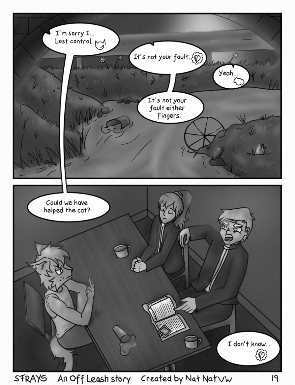 Strays: An Off-Leash Story is an ongoing story about the tensions between mankind and “Morphs” Anthropomorphic animals with human characteristics.