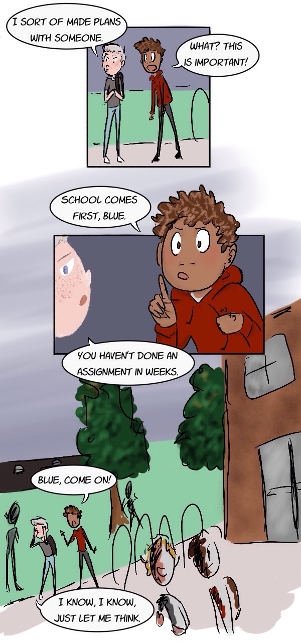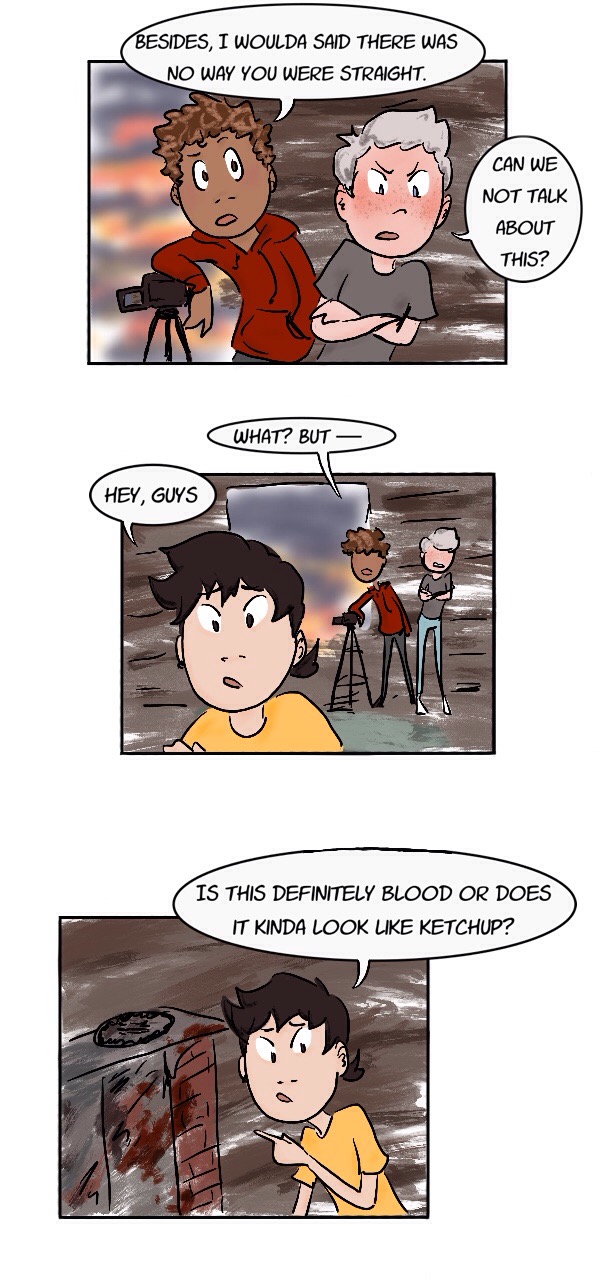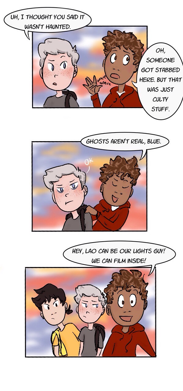 Just a story about high school and the trials of being a teen — friend drama, crushes, tests, the ghost of your dead mother, inhumane gym classes, demons, church basement conversion therapy, allegedly-haunted houses, mental health problems, and that thing that nearly killed your ex-best friend. The normal stuff. (content warnings: blood, death, alcohol/drug use, homophobia)