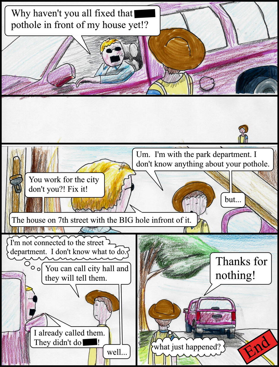 Drive by tell off. All part of being a public employee I guess.