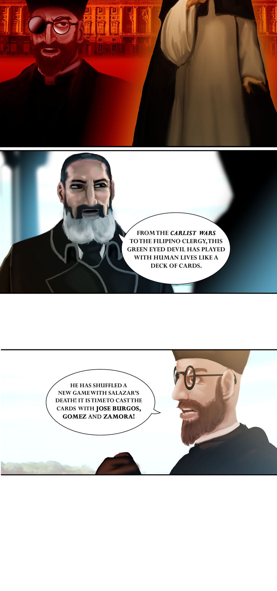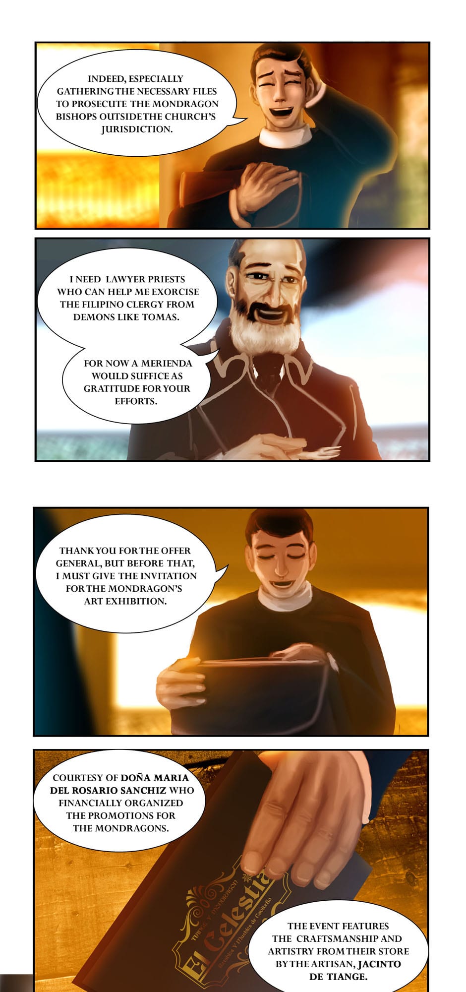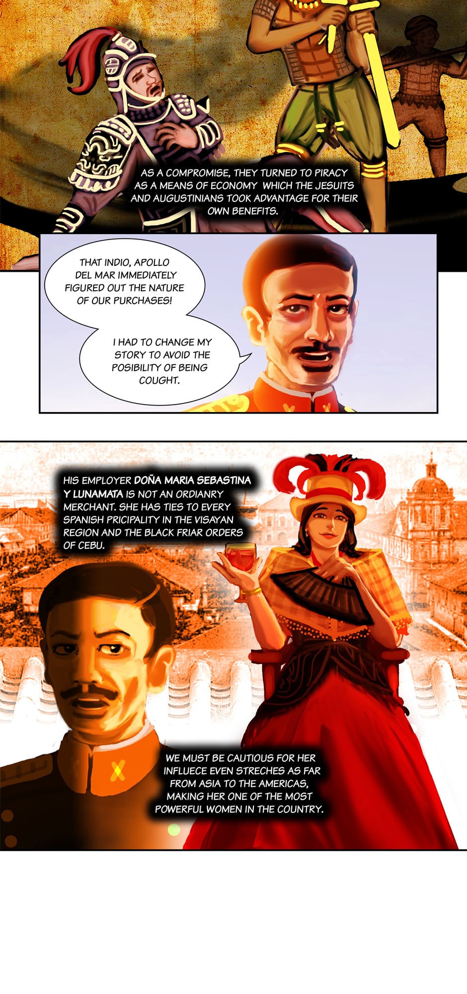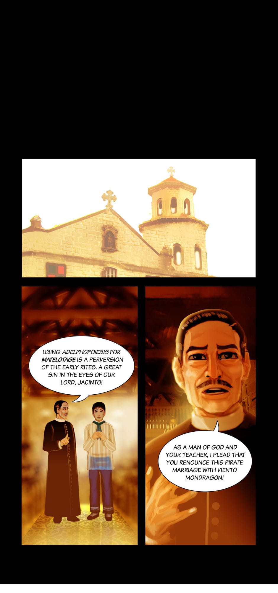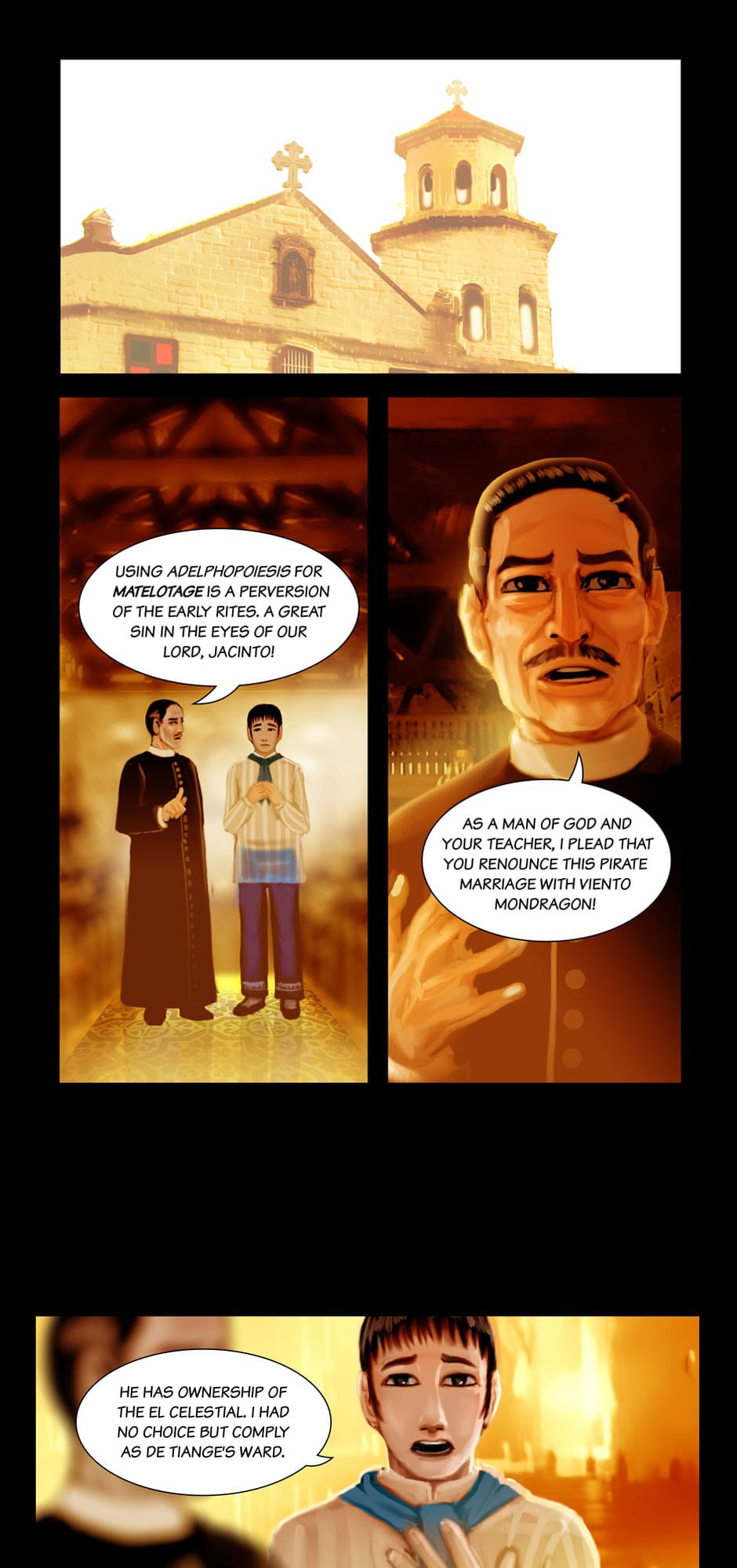 Summary: The governor-general Carlos de la Torre and Msgr. Ignacio Barba seeks the aid of Cannon Lawyer/ Investigator Fr. Jose Burgos to prosecute the Mondragon Bishops for Political Privateering and Conspiracy, while Apollo Del Mar suspects Sergent La Madrid having an ulterior motive for his purchases.