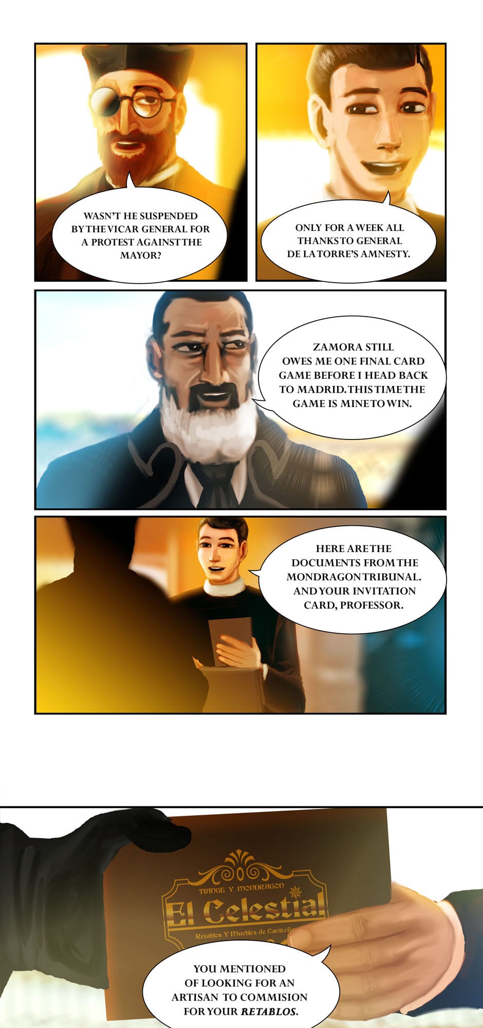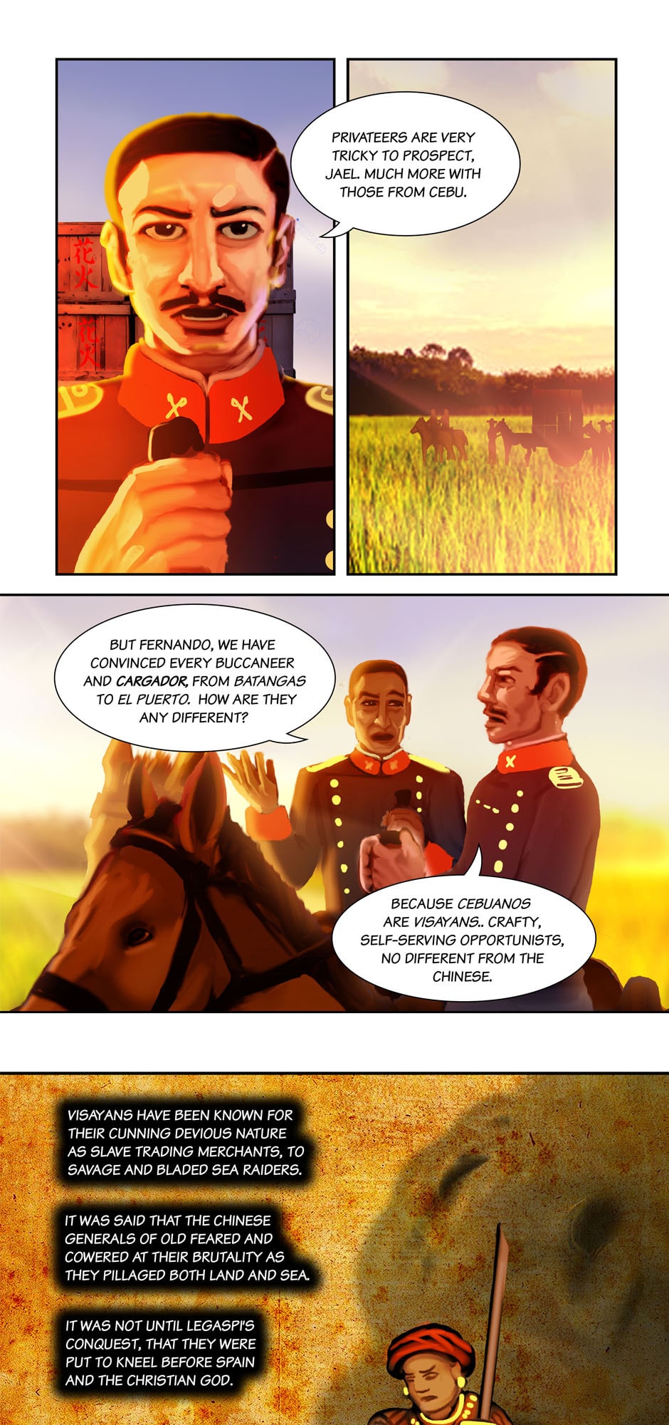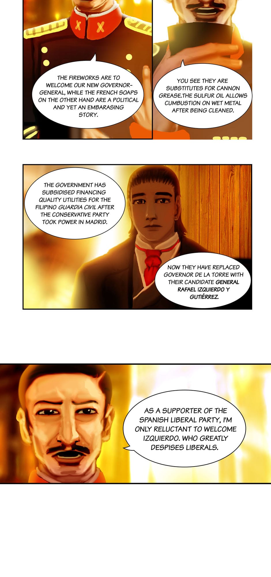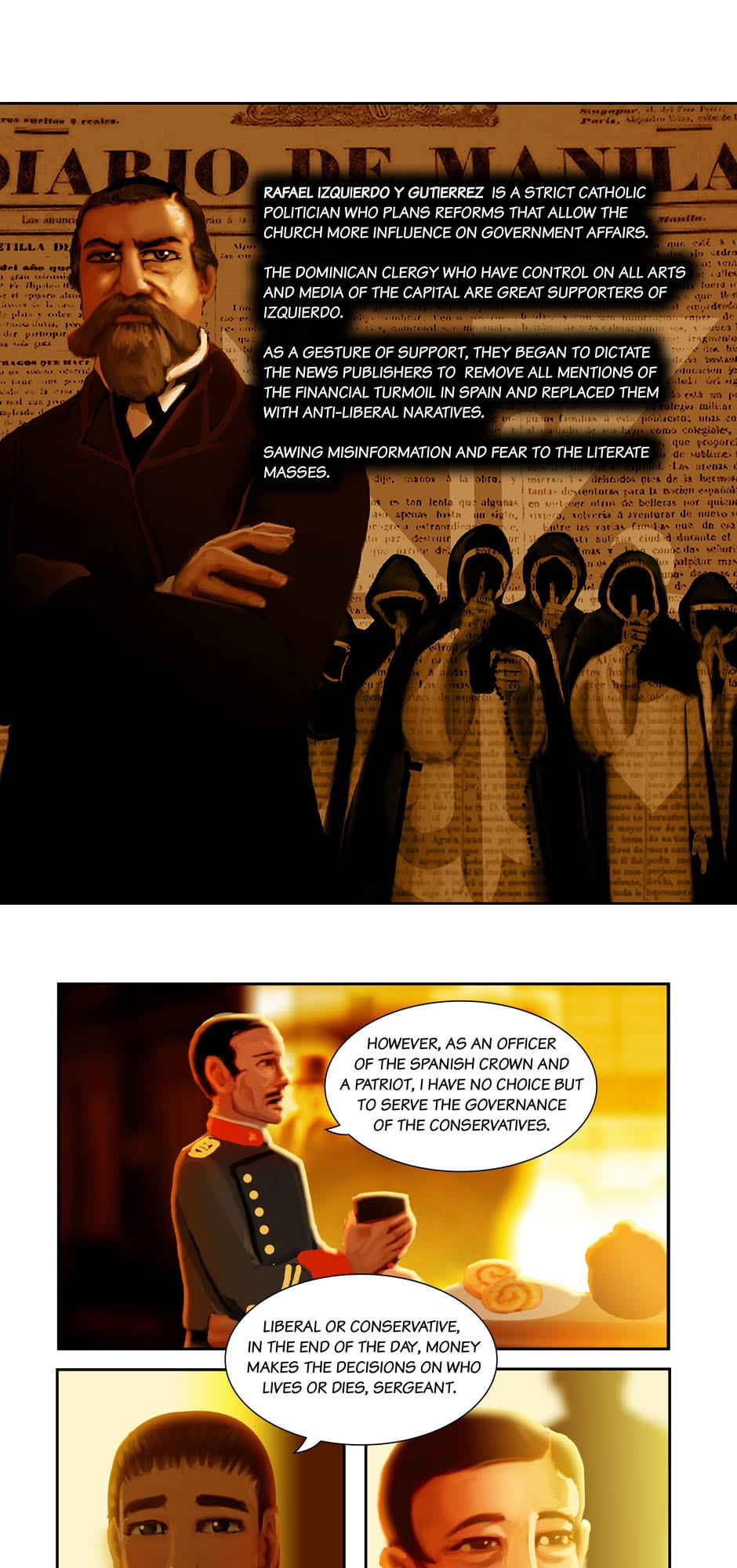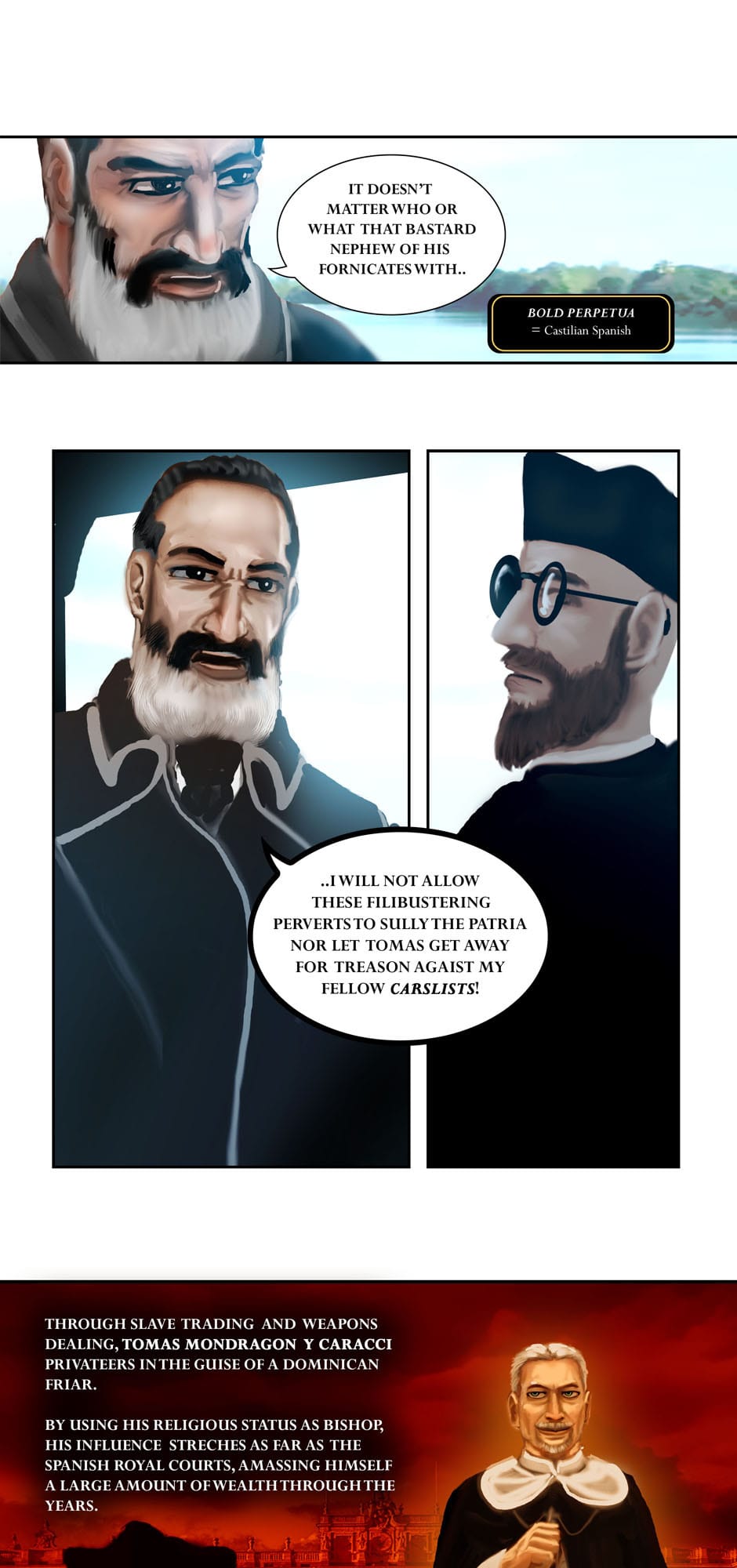 Summary: The governor-general Carlos de la Torre and Msgr. Ignacio Barba seeks the aid of Cannon Lawyer/ Investigator Fr. Jose Burgos to prosecute the Mondragon Bishops for Political Privateering and Conspiracy, while Apollo Del Mar suspects Sergent La Madrid having an ulterior motive for his purchases.