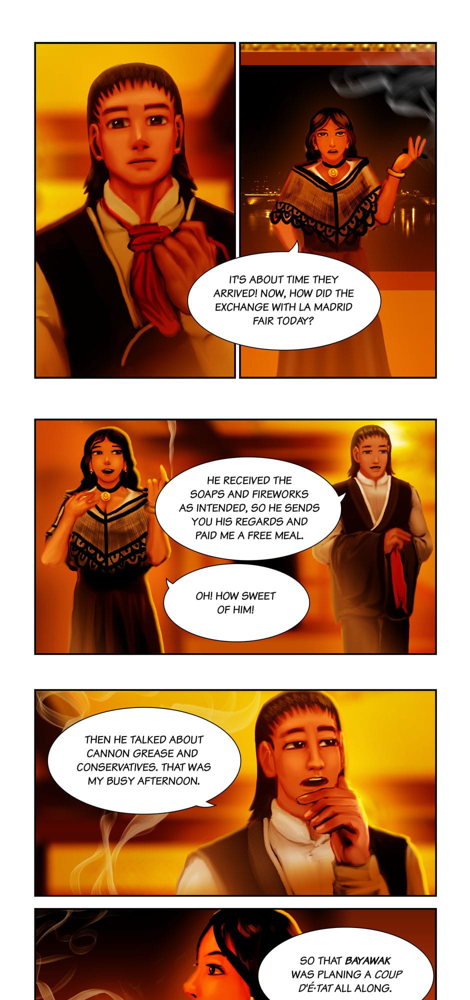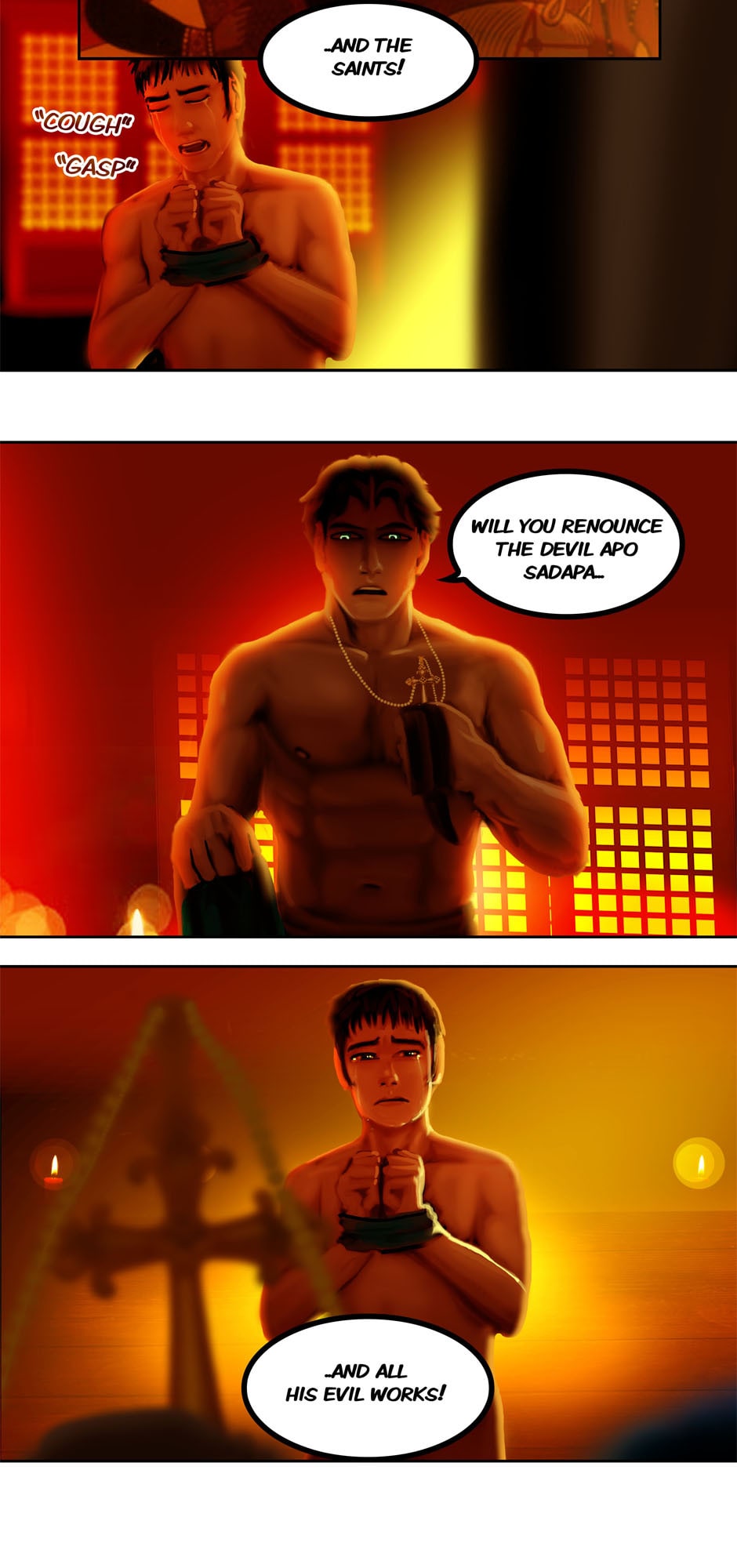 Summary: Divine Madness has taken hold of the Dominican bishop Viento Mondragon as he proceeds to oppress his lover Jacinto to submit and banish all thoughts of Apo Sadapa from memory. Meanwhile Apo (under the identity of Apollo Del Mar) reports to his employer Doña Lunamata about their business with Sergent La Madrid.