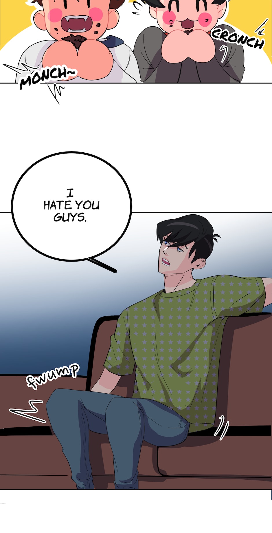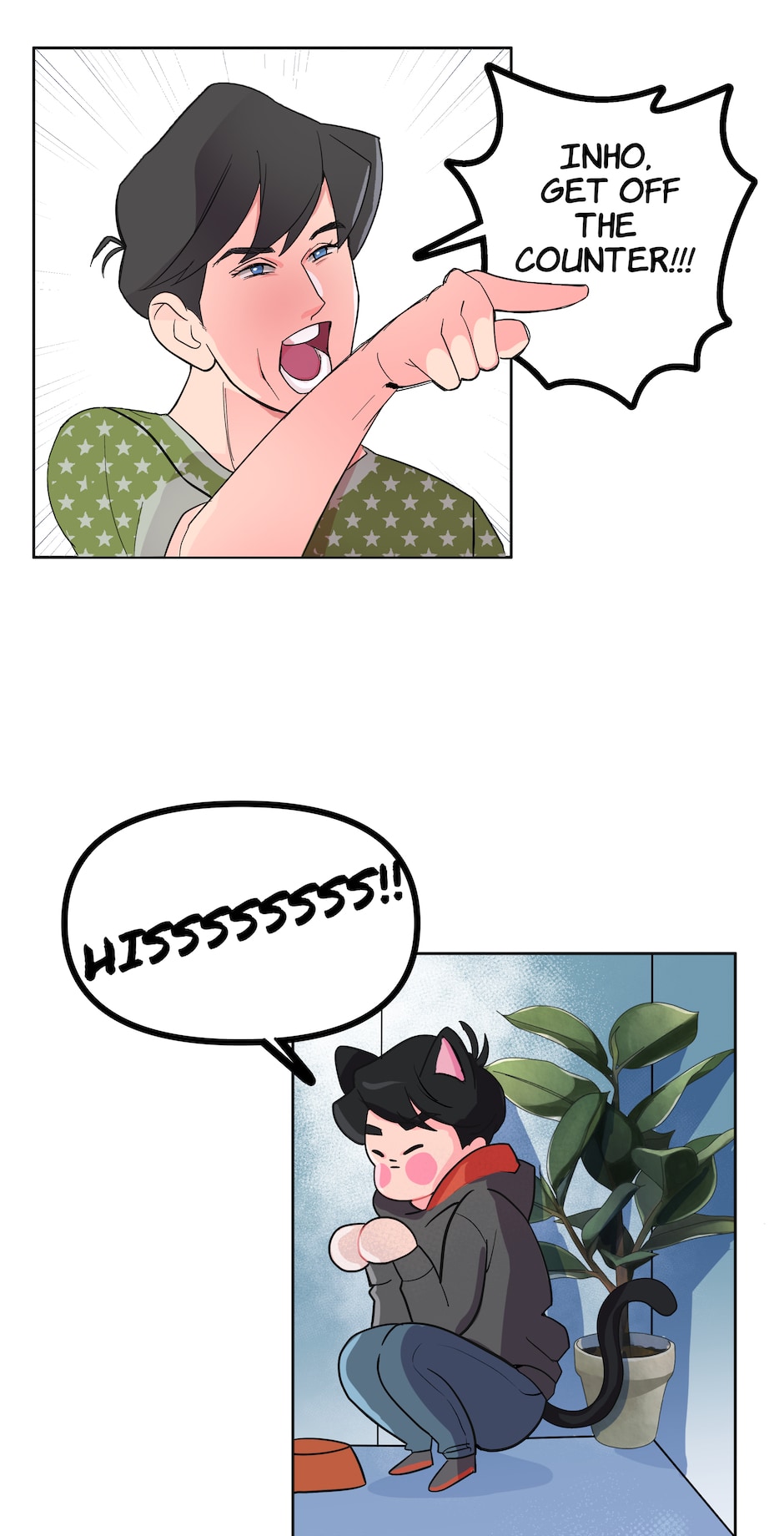 A silly spooky Kiss It Better AU mini-comic: Read the novel for the full spicy romance!