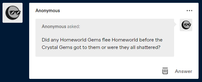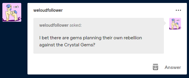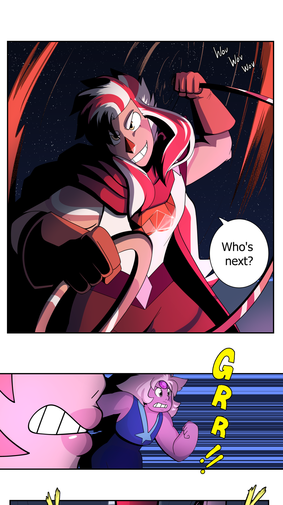 Im loving this comic can't wait to see what happens. Also id really like to see more flash backs between greg and blue diamond and what happend between the diamonds and the jem war plus why isn't rose quartz on earth sense earth was the reason the gem war started at least thats what happend in the prime universe