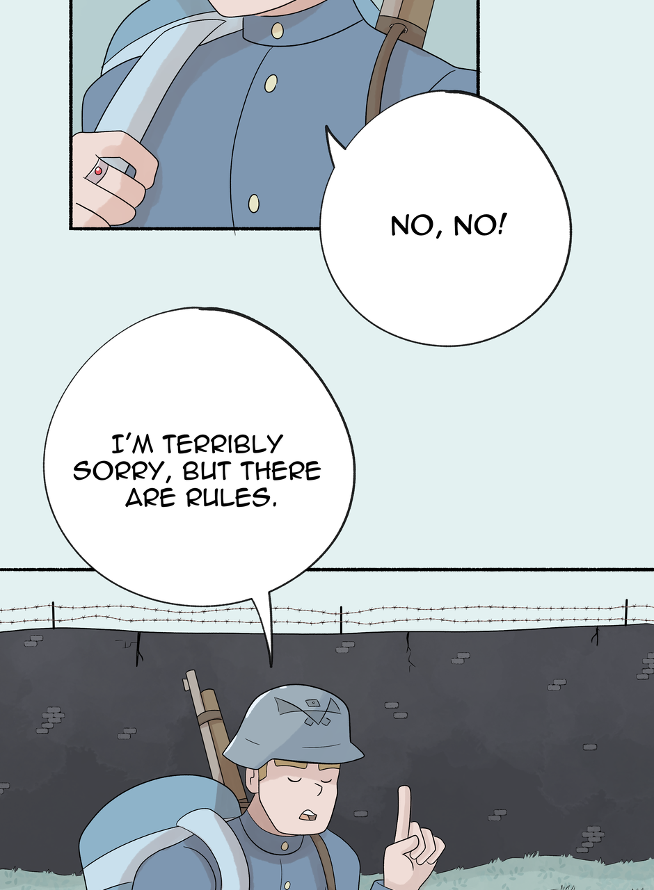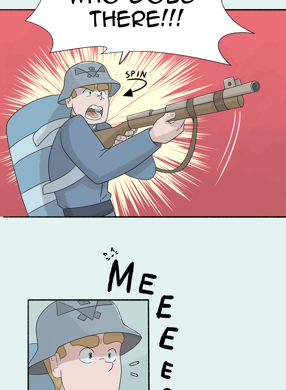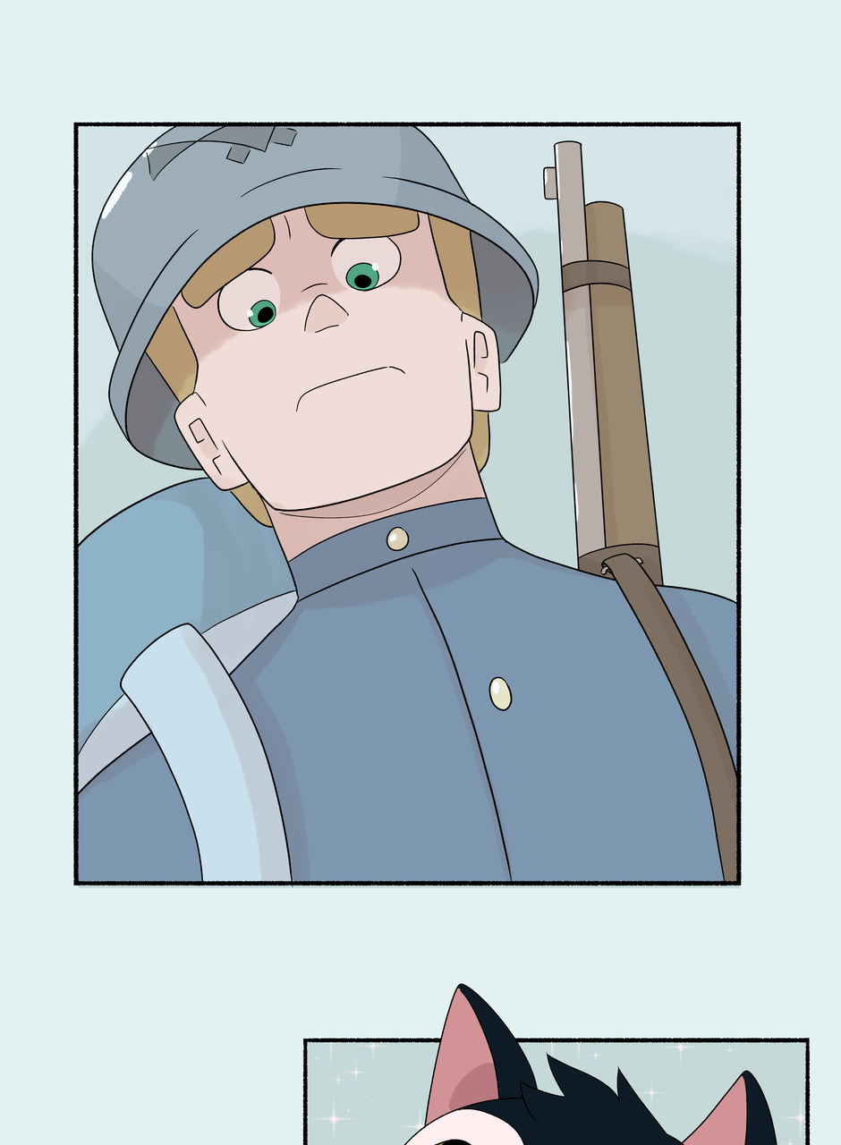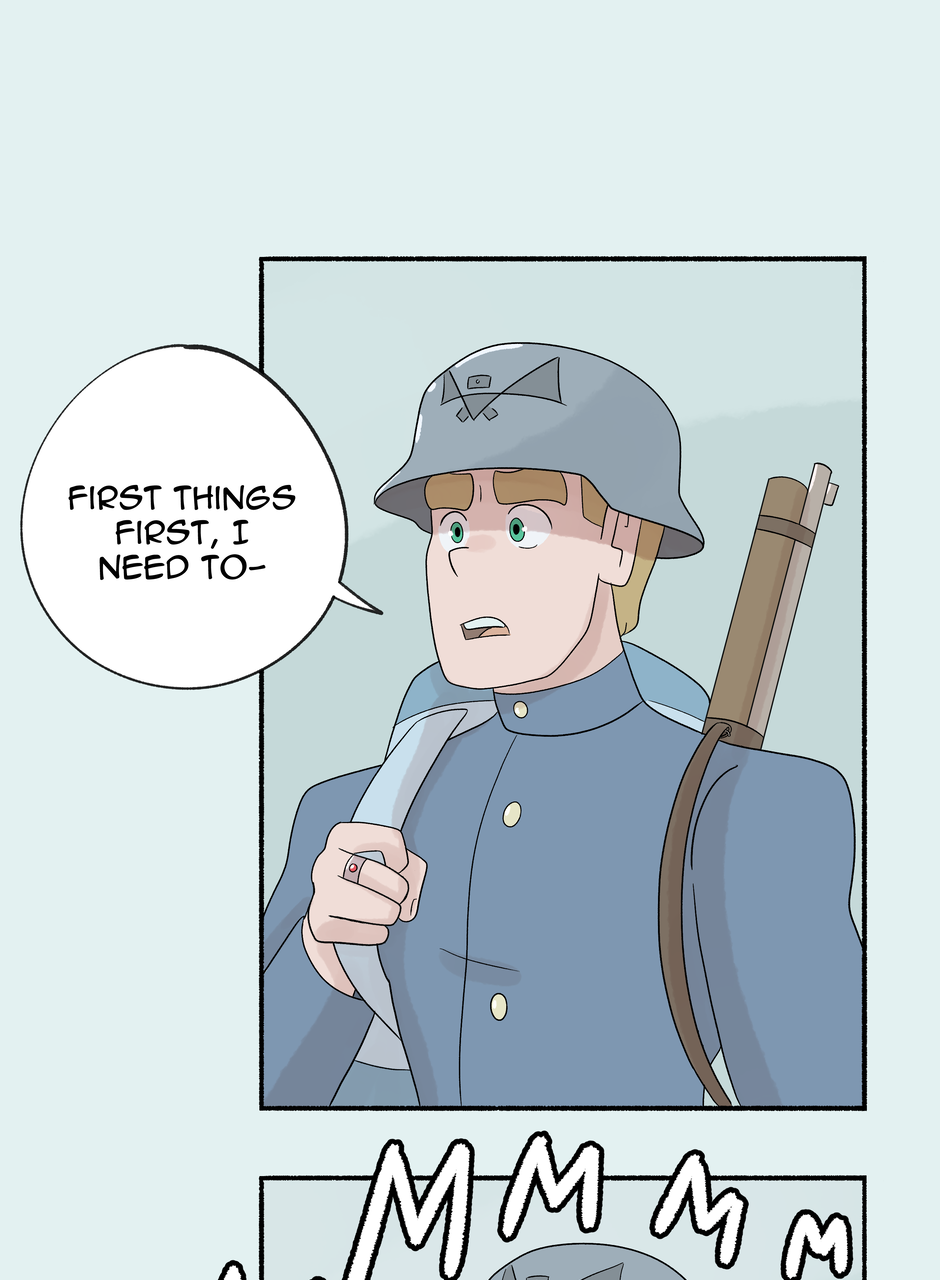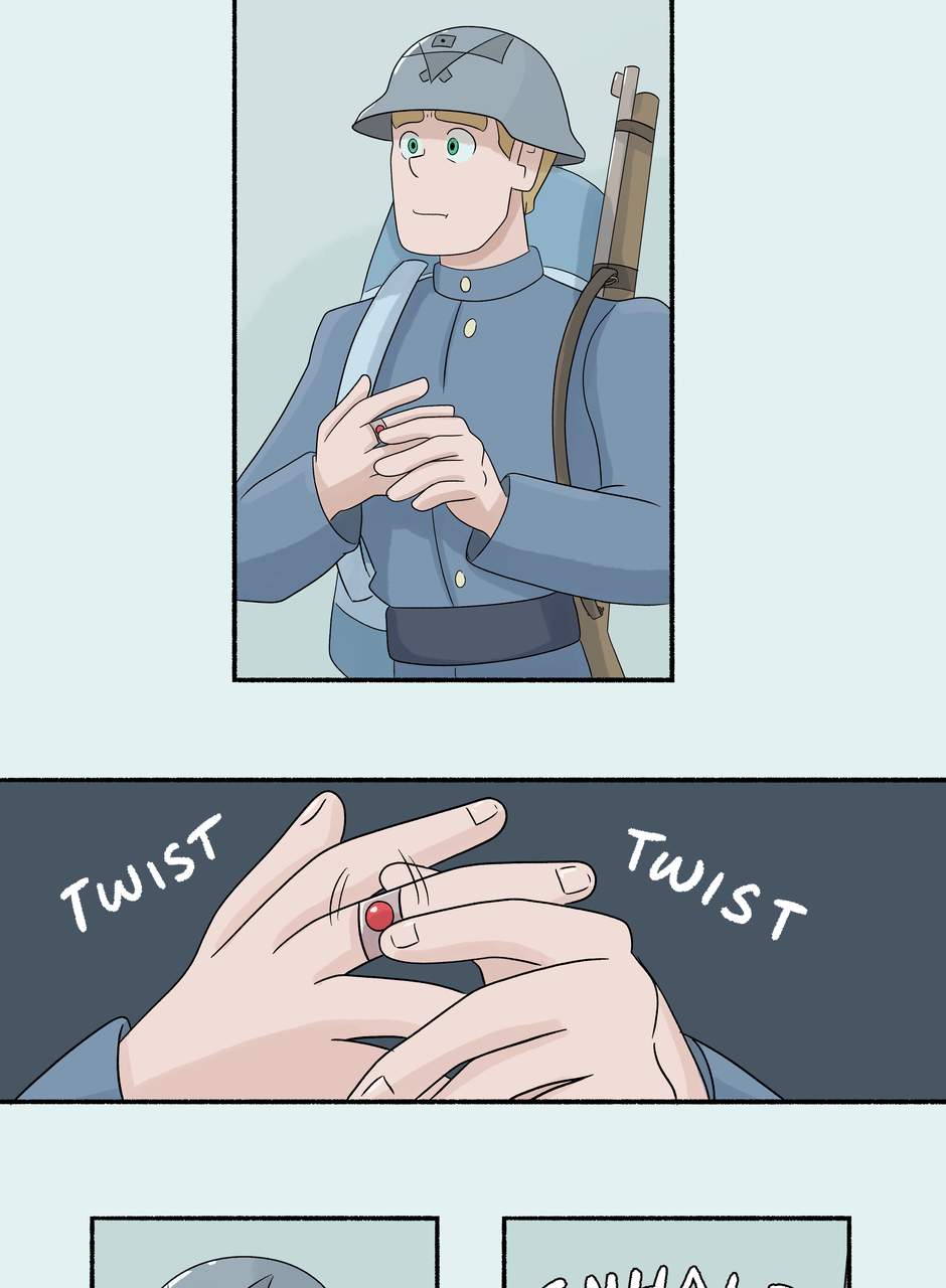 Fenn and Tobias are two soldiers stationed on opposite sides of an ancient border wall. Each taught to hate the other, all their notions of right and wrong, love and hate, war and peace are challenged when a freak lightning storm brings down the wall between them. Set against the backdrop of an all encompassing, Edwardian-esque world war, this MM comic explores love through the little, unexpected moments that add up to great change.
