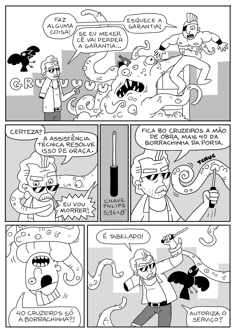 Anselmo é chamado para arrumar uma geladeira com defeito.