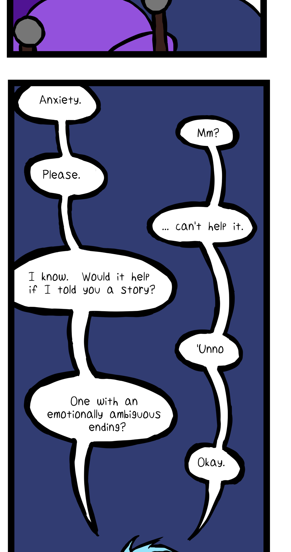 “A number of them have manifested physically, but they don’t always remain that way. Stomach comes and goes as she pleases, for example. The original handful of Crewmembers, Medulla, Fanny, Penny and the Child remain manifest at all times, which can make bedtime into a game of Tetris.”