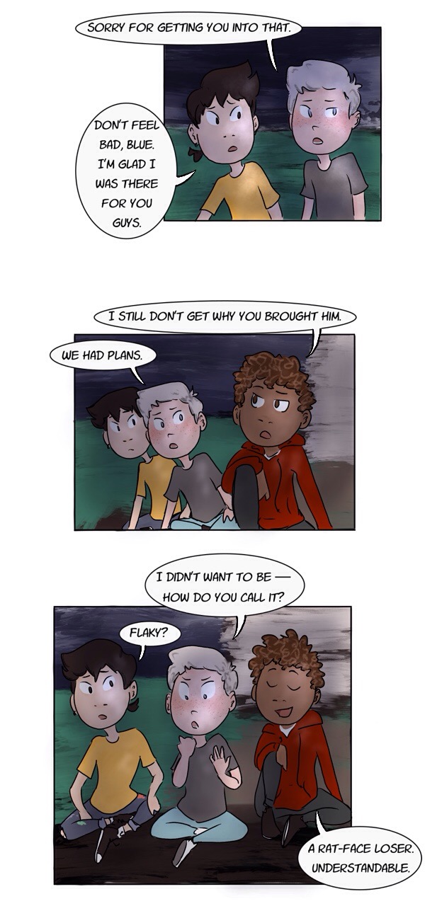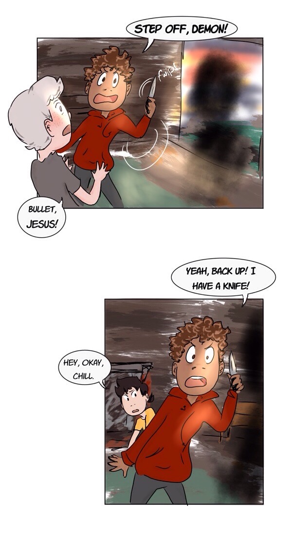 Just a story about high school and the trials of being a teen — friend drama, crushes, tests, the ghost of your dead mother, inhumane gym classes, demons, church basement conversion therapy, allegedly-haunted houses, mental health problems, and that thing that nearly killed your ex-best friend. The normal stuff. (content warnings: blood, death, alcohol/drug use, homophobia)