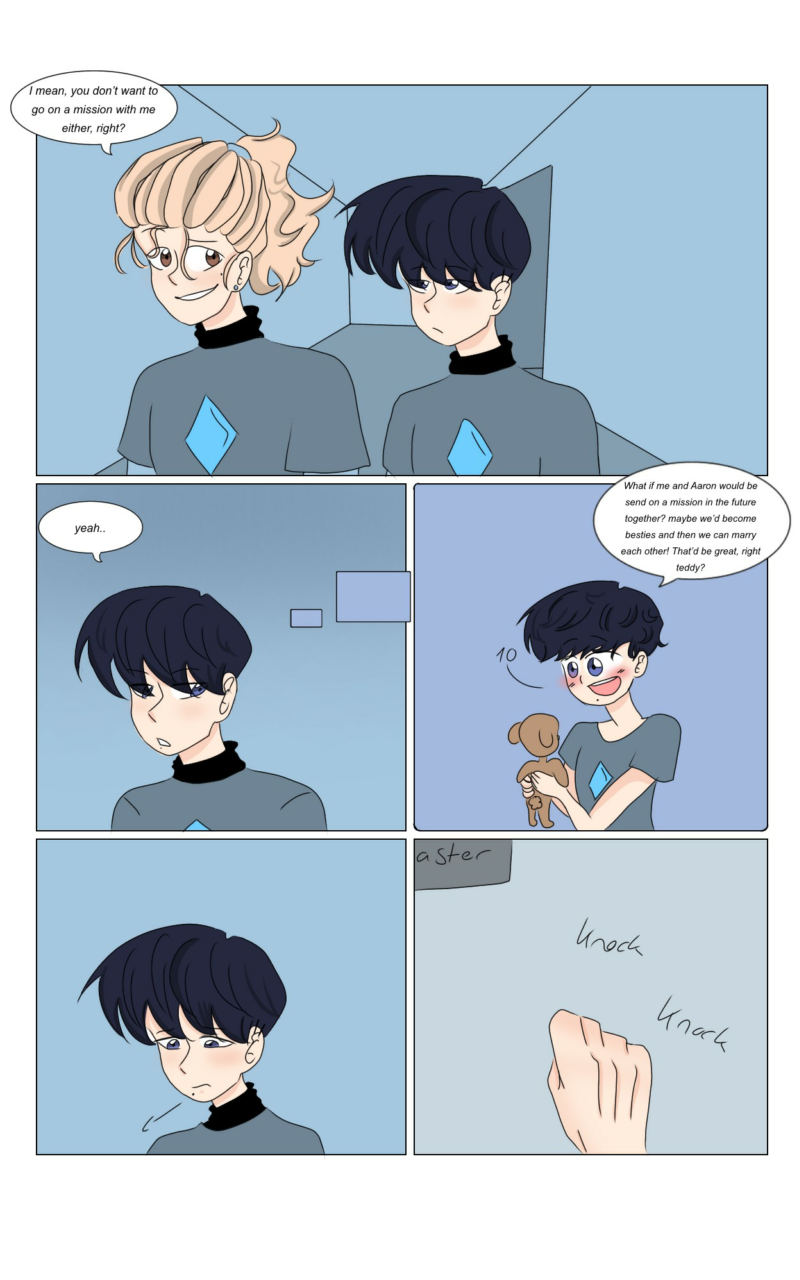 [Completed] Elliot and Aaron were the first humans in the spaceship Verrollia, to learn how to fight Space Demons, but since one of them always wanted to be better than the other, did these two always fight and so they came to not really 'like' eachother. everything somehow changes when the two have to go on a mission on a planet as a team and Aaron finds out how Elliot really feels about him.. how will everything turn out..?