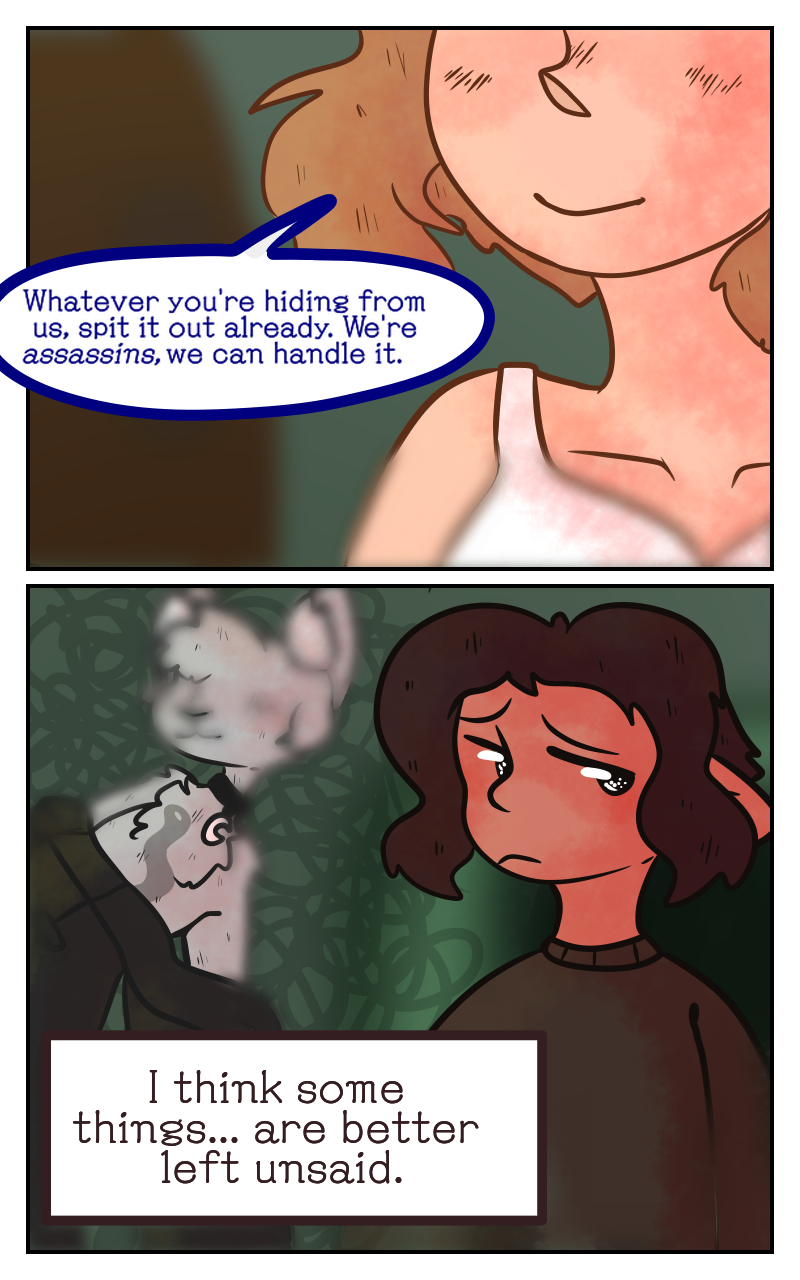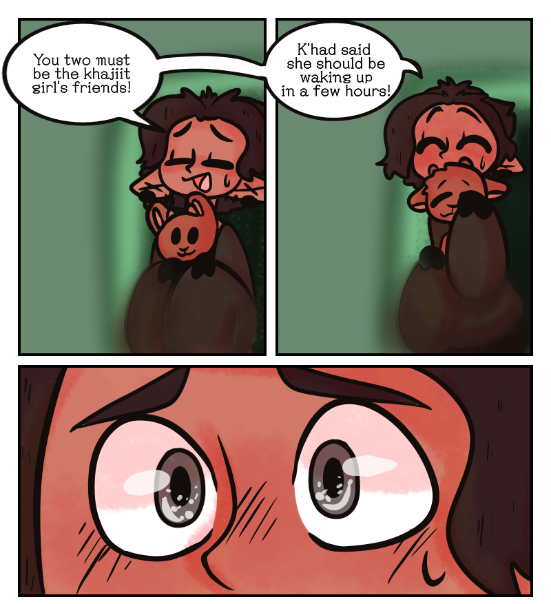 Rhinestones is a Skyrim fan-made comic about the adventures of Ahnanji the clumsy khajiit, Cicero the jester, Atrril the elf, and Babette the vampire! They may be Dark Brotherhood assassins, but that doesn't mean that they can't have fun, wacky adventures as well! The series can also be found on Skyrim Amino and Webtoon!