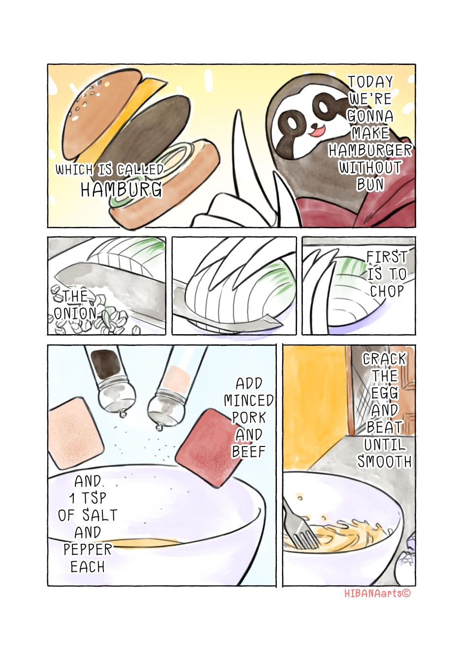It is really nice to see some recipes in comic form. ☺ thank you so much for sharing this! I love it and it's really good to understand! (Just saying this Hamburg is a City in Europe, Hamburger is the food. I know it with all the bread and veggie around it)