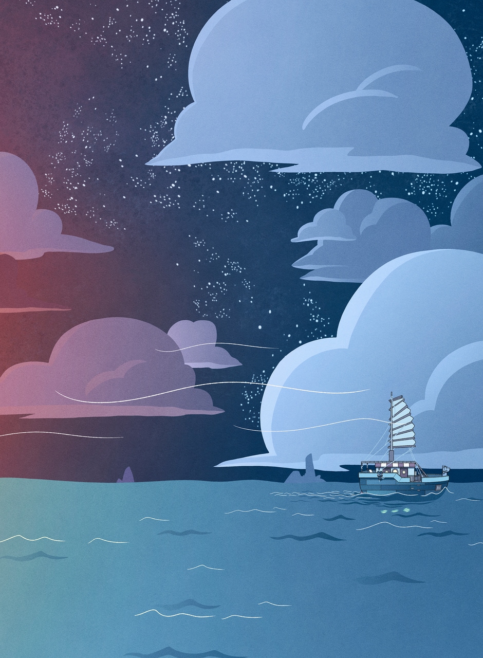 Qwaa and Gary's first night on the Sea Llama~~