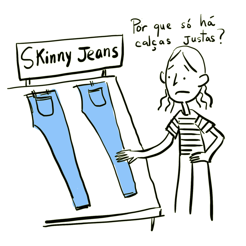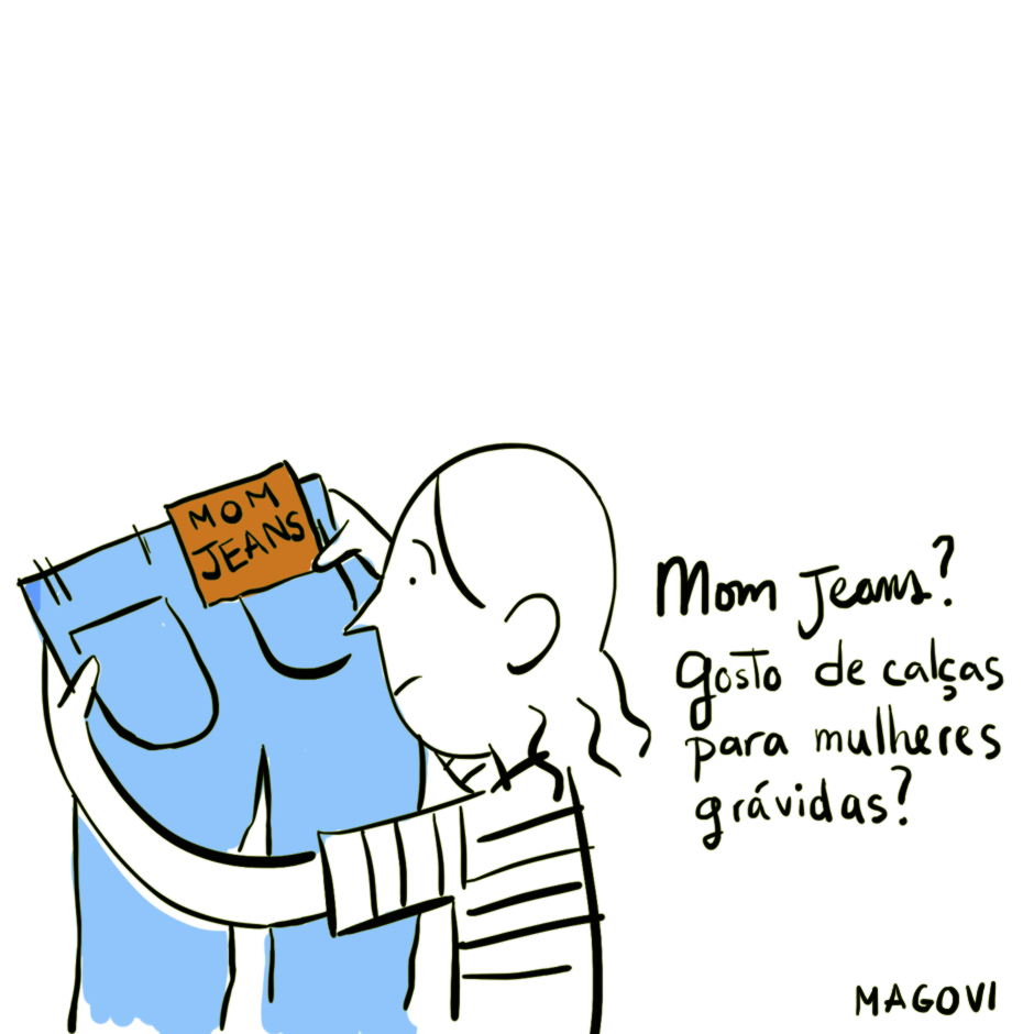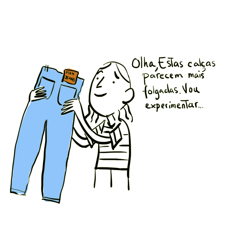 Depois verifiquei que não se tratavam de calças para mulheres grávidas, era só moda.