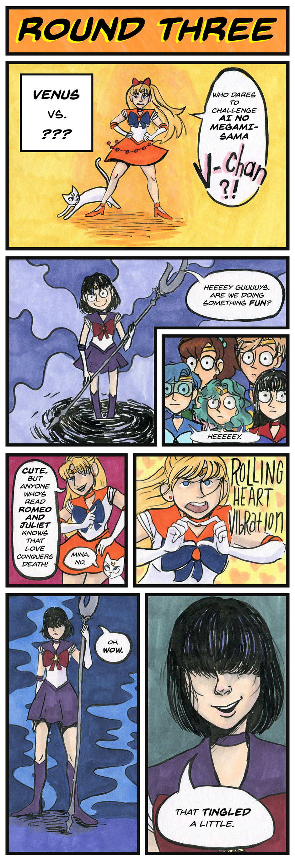 This Sailor Moon fan comic was our first attempt at a multiple page comic, completed in 2014. The art is done with Copic markers and it's not to be taken seriously in the slightest.