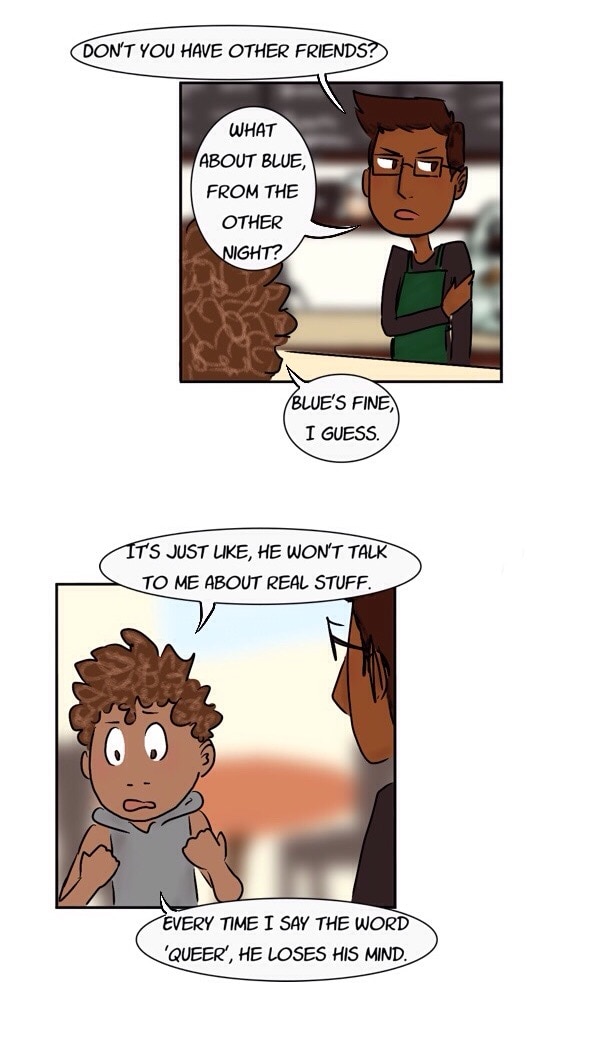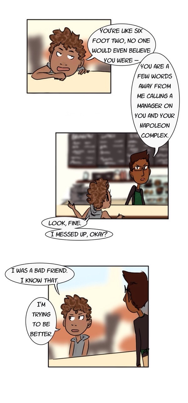 Just a story about high school and the trials of being a teen — friend drama, crushes, tests, the ghost of your dead mother, inhumane gym classes, demons, church basement conversion therapy, allegedly-haunted houses, mental health problems, and that thing that nearly killed your ex-best friend. The normal stuff. (content warnings: blood, death, alcohol/drug use, homophobia)