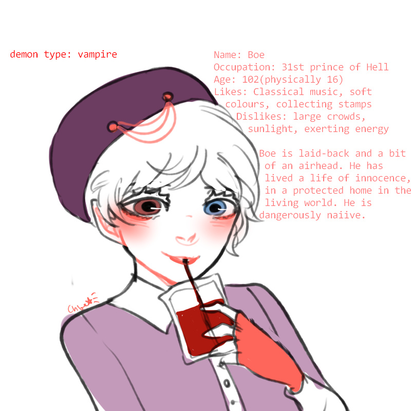 Rakkuen is a prince cyclops demon who left Hell to escape his bullying brothers. When he arrives in the human world, he discovers he absolutely adores human fashion and most of all, cats