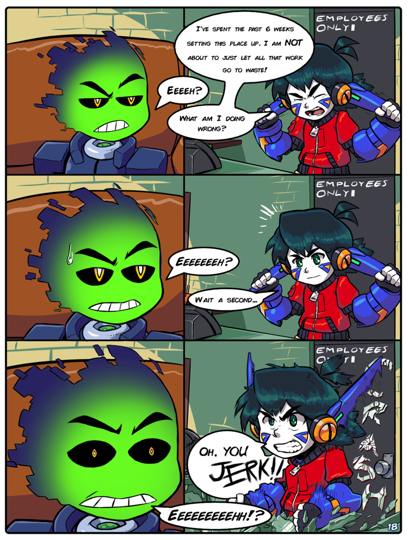 Welcome back to Dawn City, C.A. We'll be resuming uploads again from here on out, though at a bit of a slower, more workable pace of one page per week every Monday, so you can close off a boring and sluggish start of the week with some more quirky robots in your life. Uploading two pages a week with a small backlog was probably the smallest-brain idea anyone on this website (and possibly the entire world) could have possibly had, and coupled with the slap in the nuts that was late-2020/most-of-2021, it led to a pretty considerable snafu in regards to managing a work-life balance and getting back into the swing of things. Though the slower release rate might get agonizing, we feel it's what we need to do in order to work a bit more comfortably as a team of four.