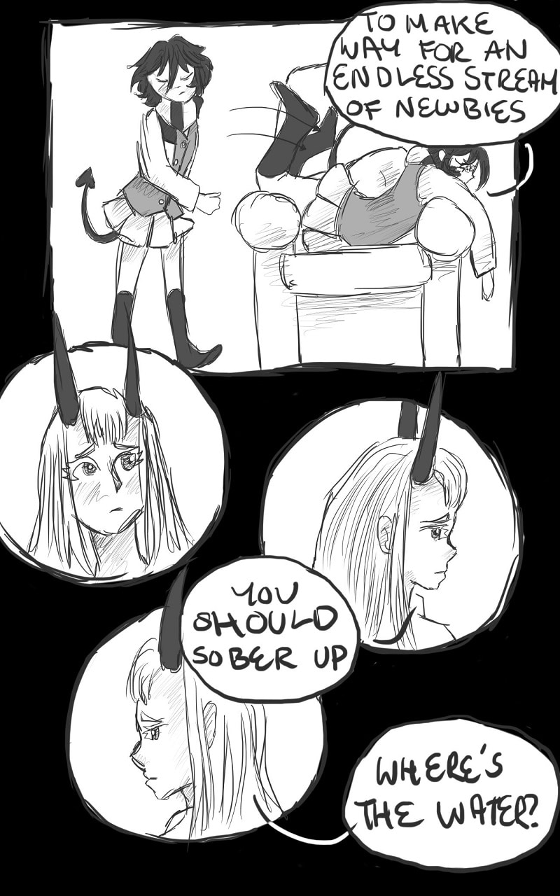Every night Rosie finds herself down at 'The Belle of Hell'; a curious tavern filled with curious characters all hiding their own sorrows. This new world she has found herself in is uncanny and there is no way to go back to the life she had before. It's hard to forget the past and move on but Rosie and her new found friends are going to make the most of this second chance. I'll be updating this fortnightly on Webtoon and then putting the full chapters here on Tapas!