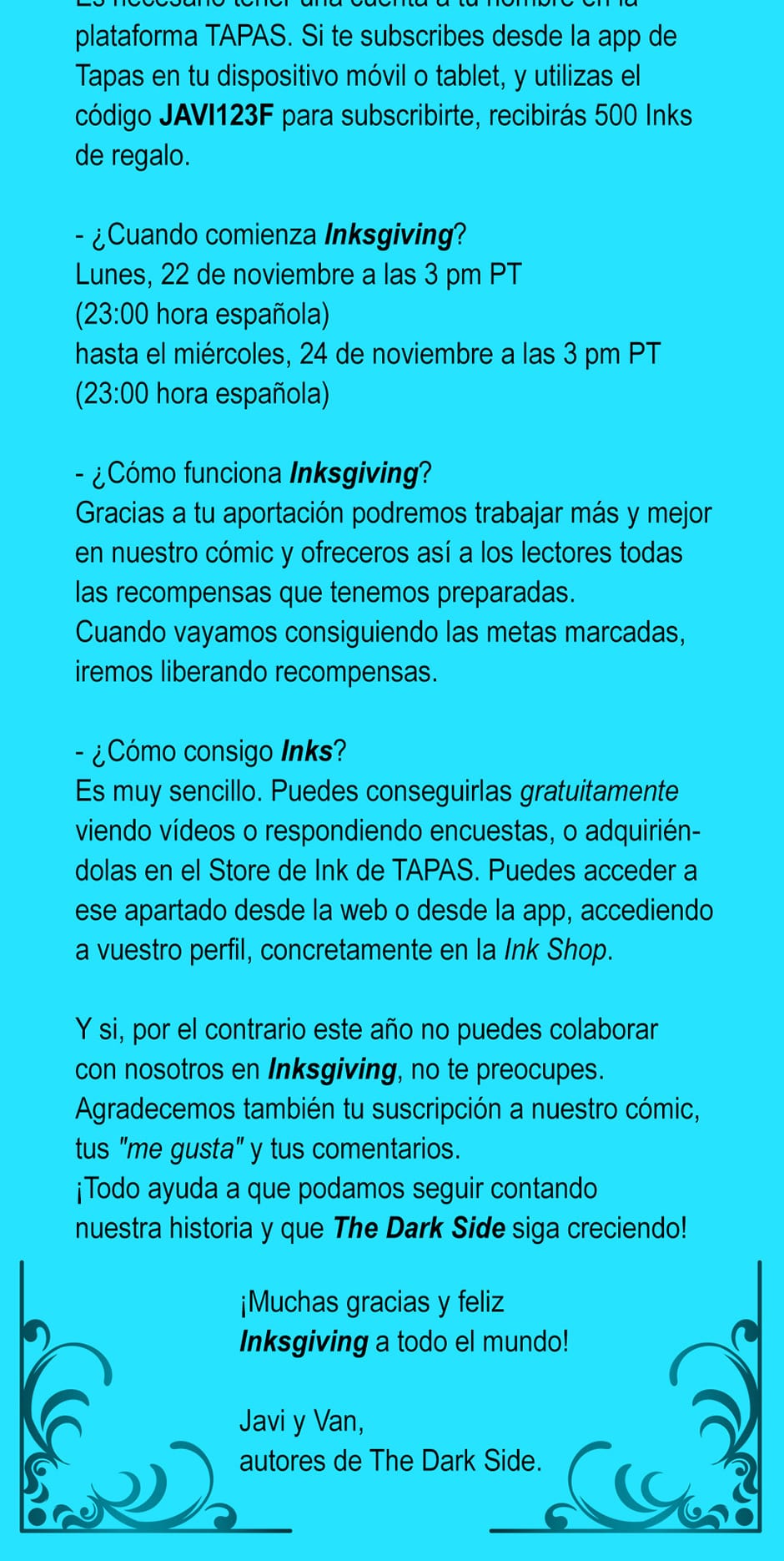 ¡Nuestro primer Inksgiving! Hemos preparado recompensas muy interesantes si conseguimos los objetivos que nos hemos marcado.