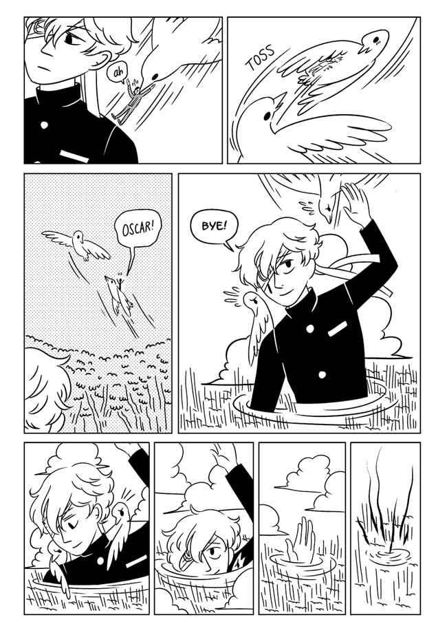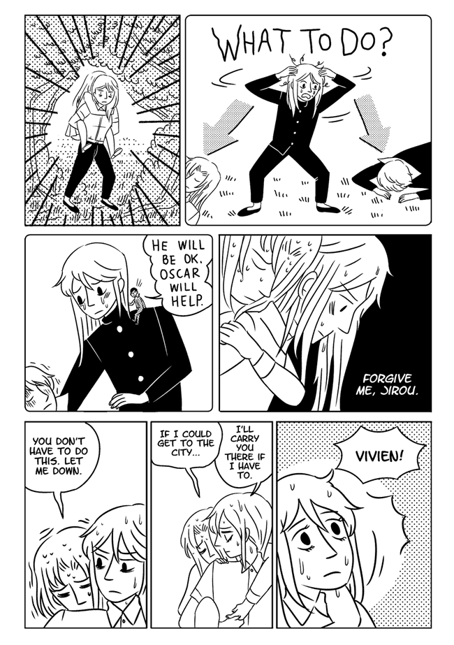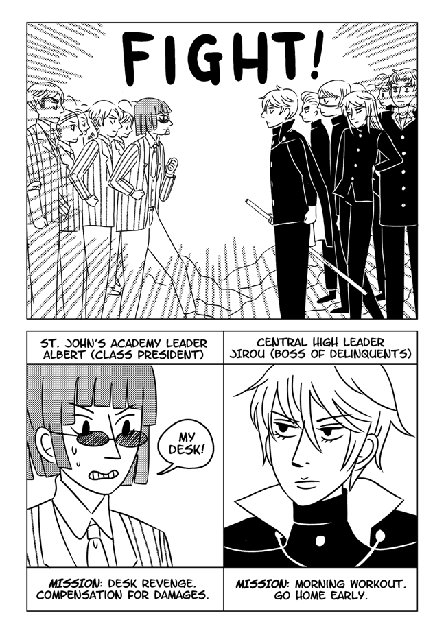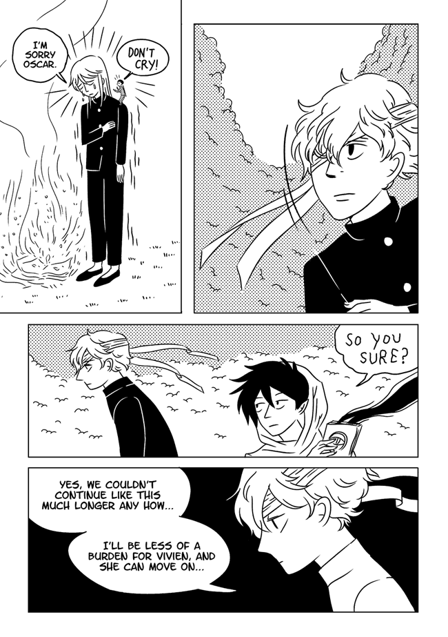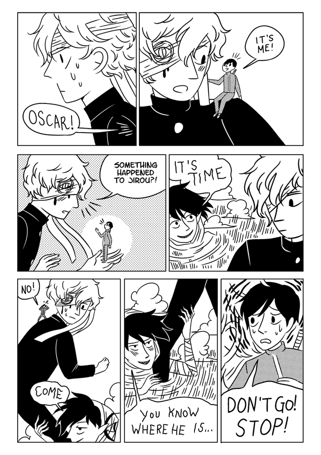 High school delinquent Jirou has a lot of indescribable feelings for student council president Oscar who actually has a huge secret that makes it difficult for him to get close to anyone. In order to survive he and his friend Vivien take on ghosts and demons in the middle of the night. About trauma, friendship, soft feelings. Romantic, comedic, and nostalgic and full of love for all the characters.