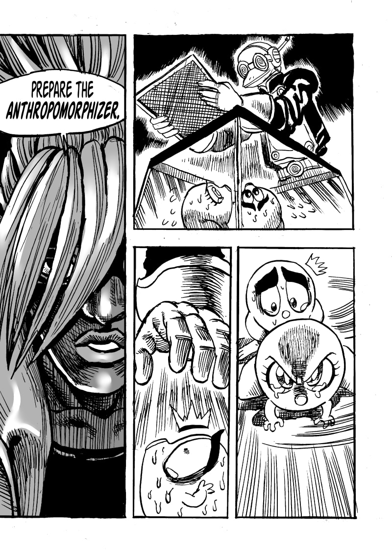 REVO-REVOLUTION is the story about Tenny, a cowardly pig-nose frog who’s captured by a tyrannical scientist, transforming him into a walking-not-talking freaky-frog! To stop the scientist, Tenny must join the smallest of rebel forces and learn the secrets of a strange, mystical martial art.