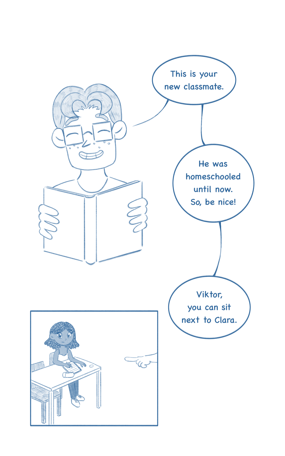 It's Viktor's first day at school. He's nervous.