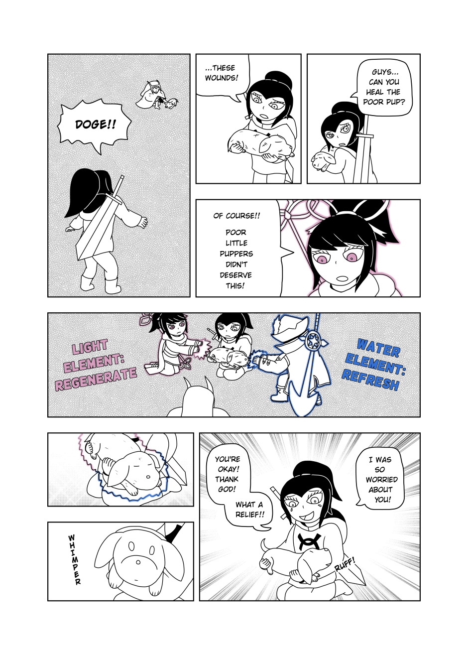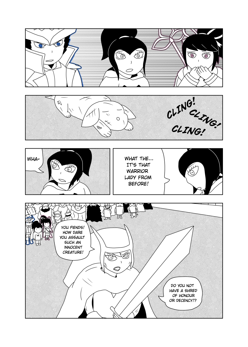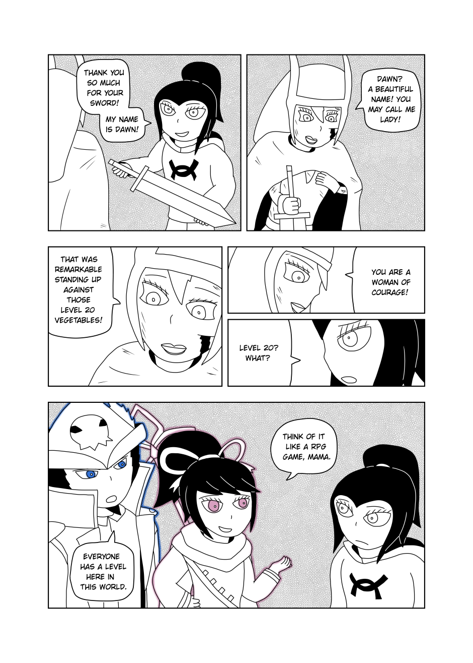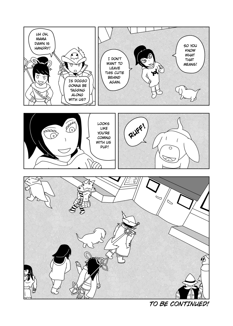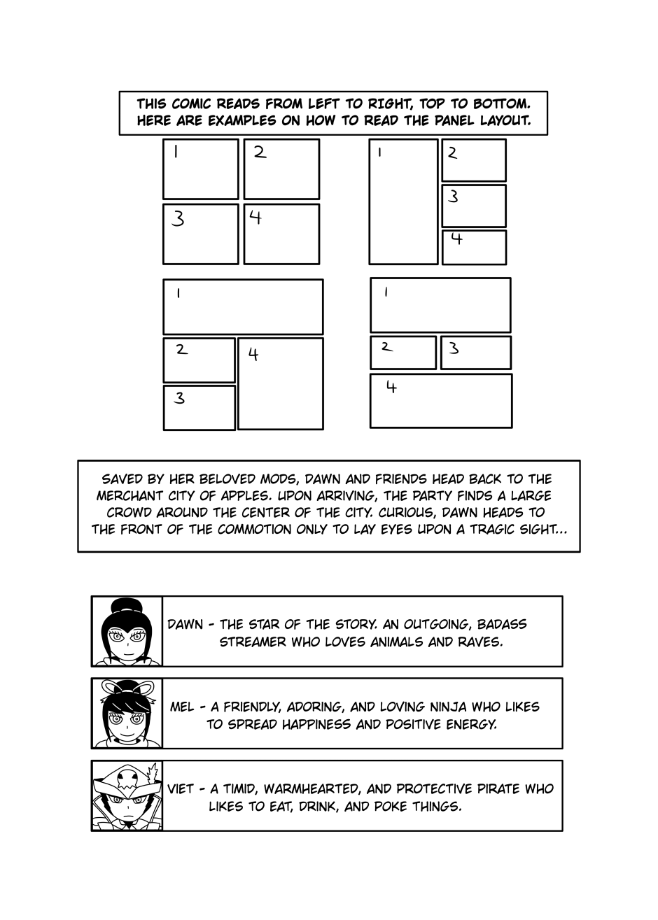 Saved by her beloved mods, Dawn and friends head back to the Merchant City of Apples. Upon arriving, the party finds a large crowd around the center of the City. Curious, Dawn heads to the front of the commotion only to lay eyes upon a tragic sight...