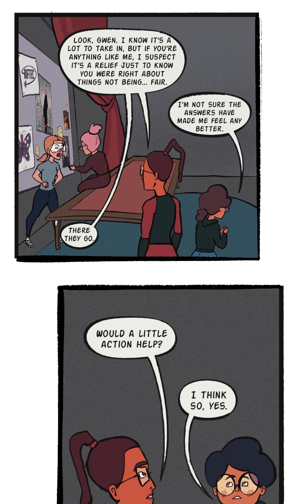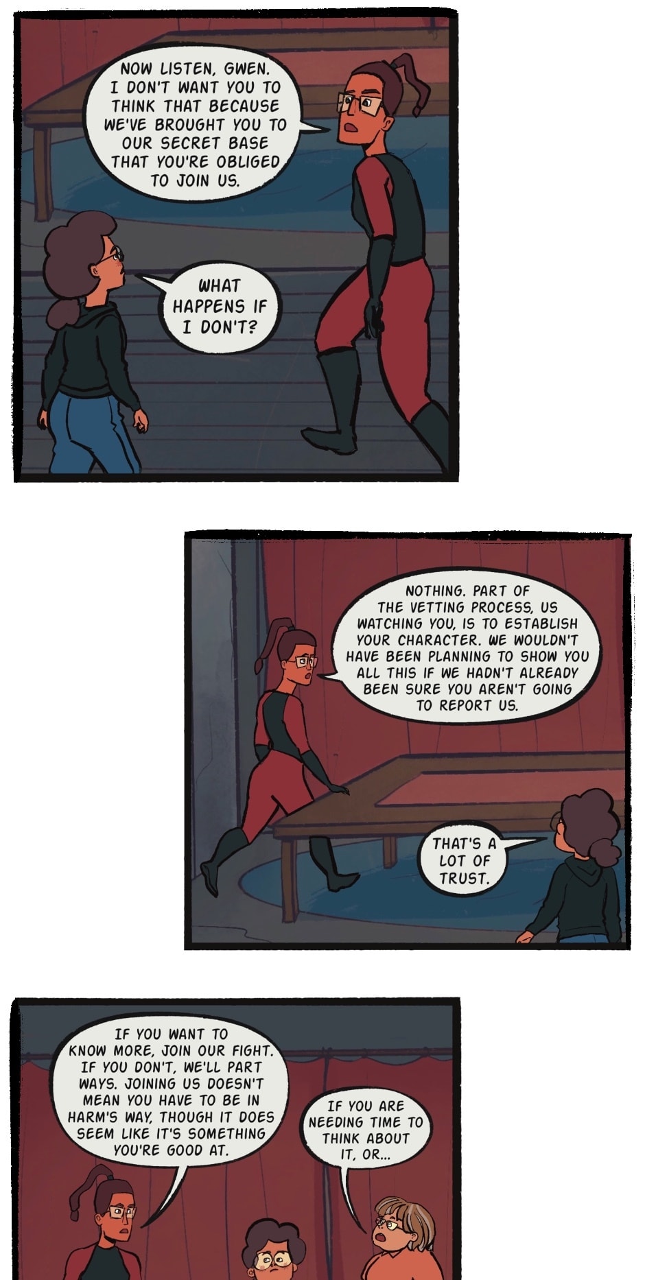 And so ends Chapter 3. Remember the friend Gwen wrote to in Chapter 1? Here she is. Also... I have a new job and have been adjusting to that, hence that little hiatus, sorry about that my dudes.