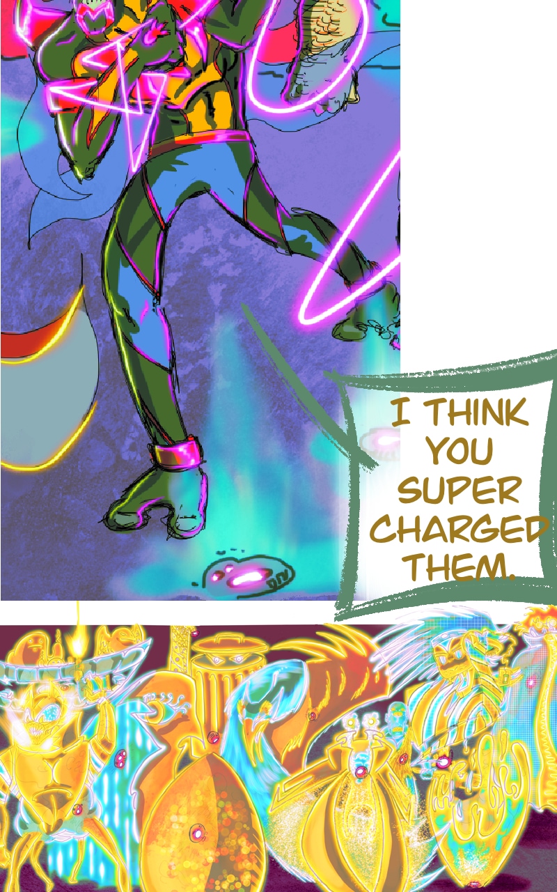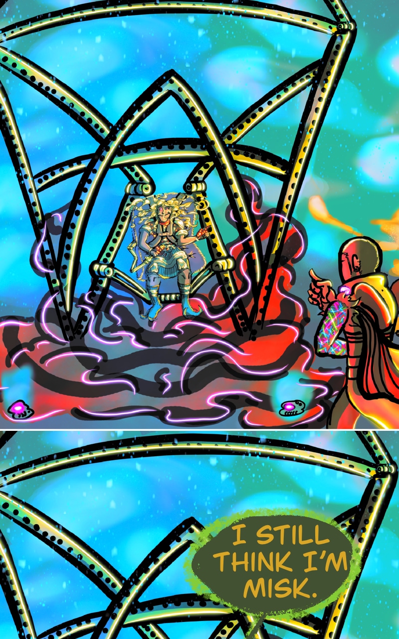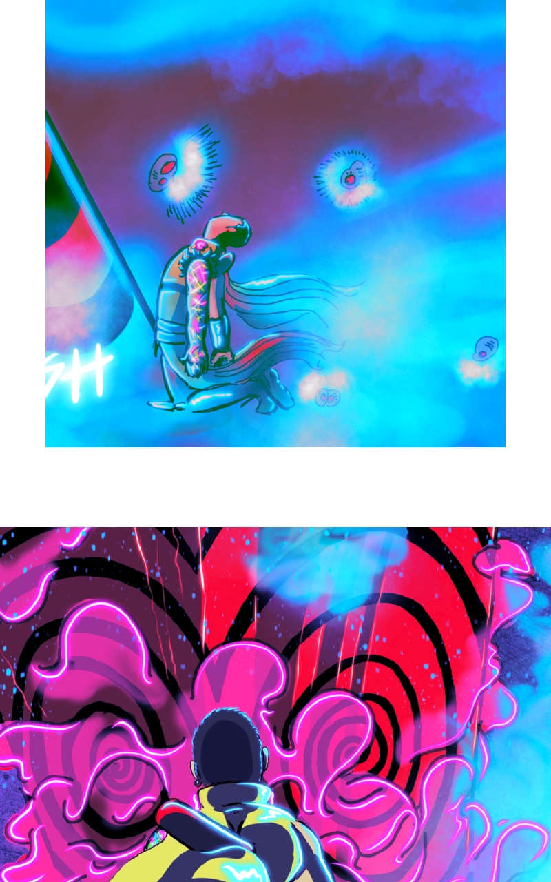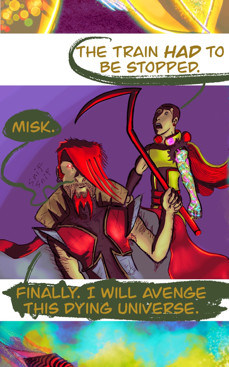CHILL. Life’s short. Make yourself happy. This comic in this format is more about a chill scrolling vibe and less story driven. It does have a complex story in the background.