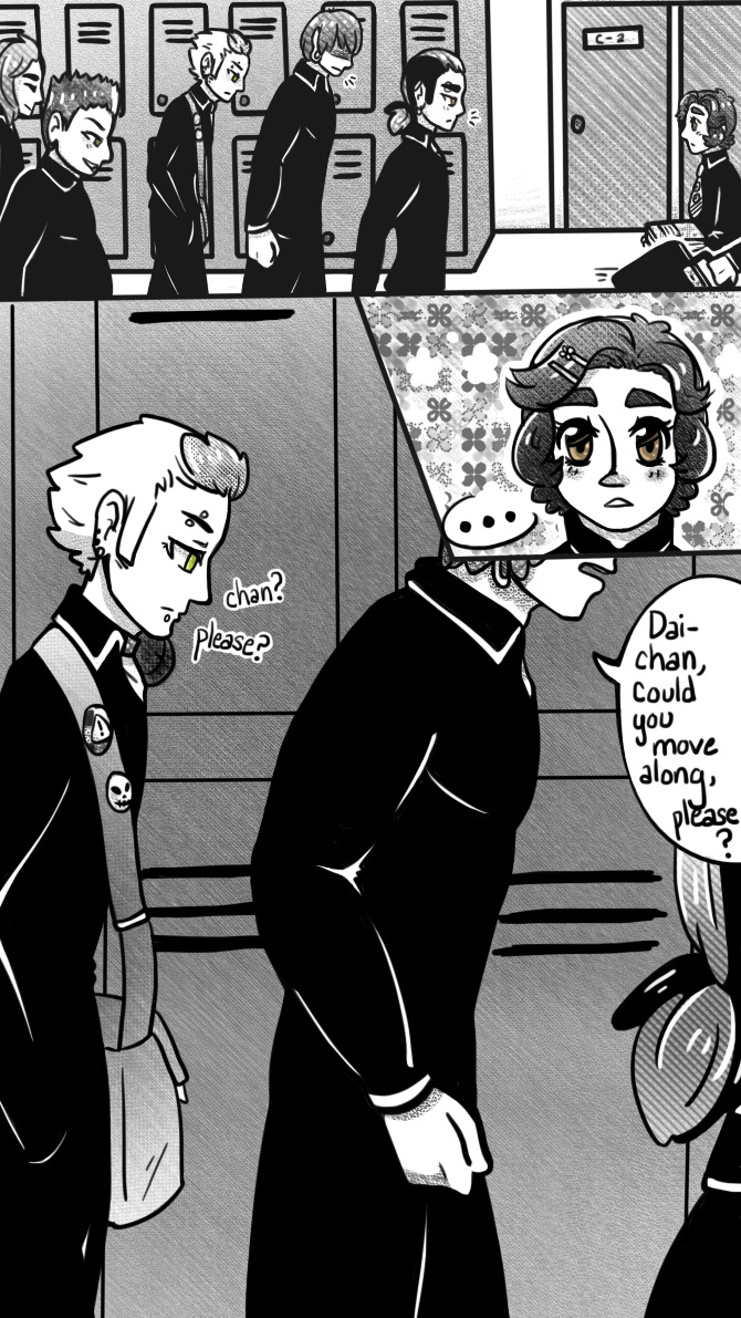 Oh, I love the gang~ And so much progress was made in this page!! *heavy sarcasm* OTL I apologize. By the end of the first chapter, plot should be evident UvU Only... this chapter is looking to be about 32 pages long based on my storyboard UvU;