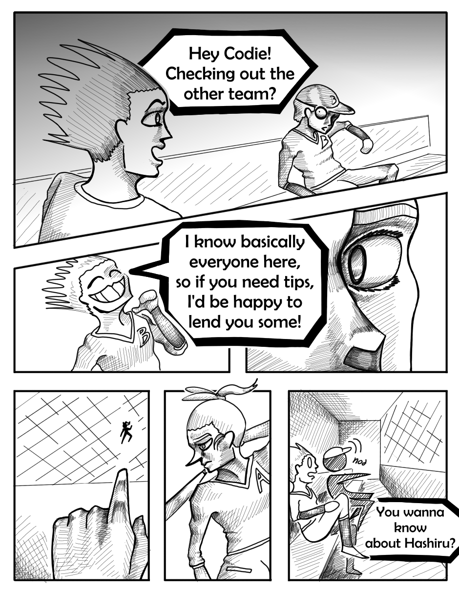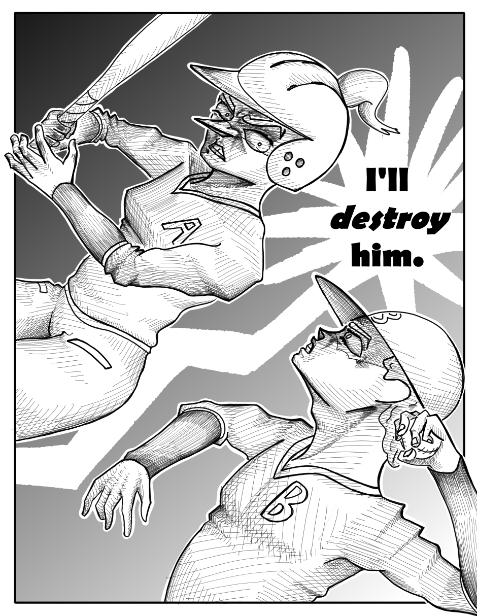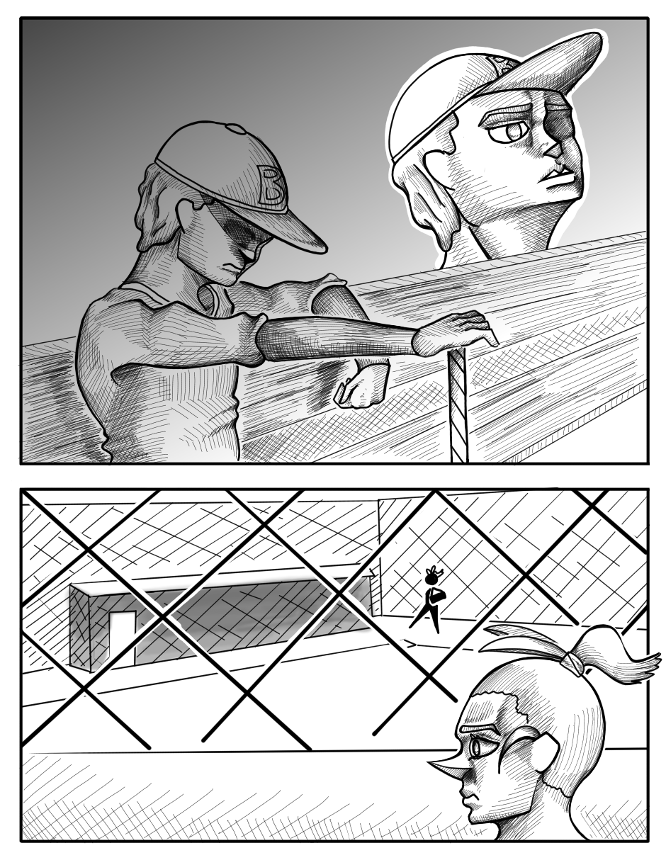 The original draft for this episode was more comedic, but I felt like that didn't really match the kind of tone this one should have. Like there was one page where Poppu wonders how the catcher is ok after catching a pitch like that twice, and when she turns to look at him he's shaking a lot. I thought it was pretty funny when I came up with it, but I realized it didn't really fit when I started drawing.