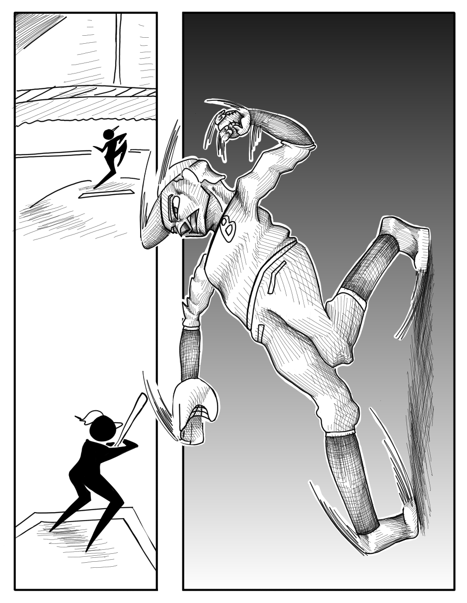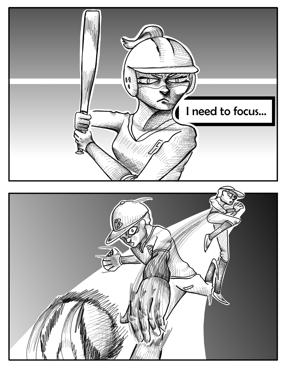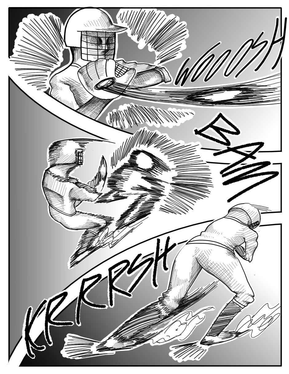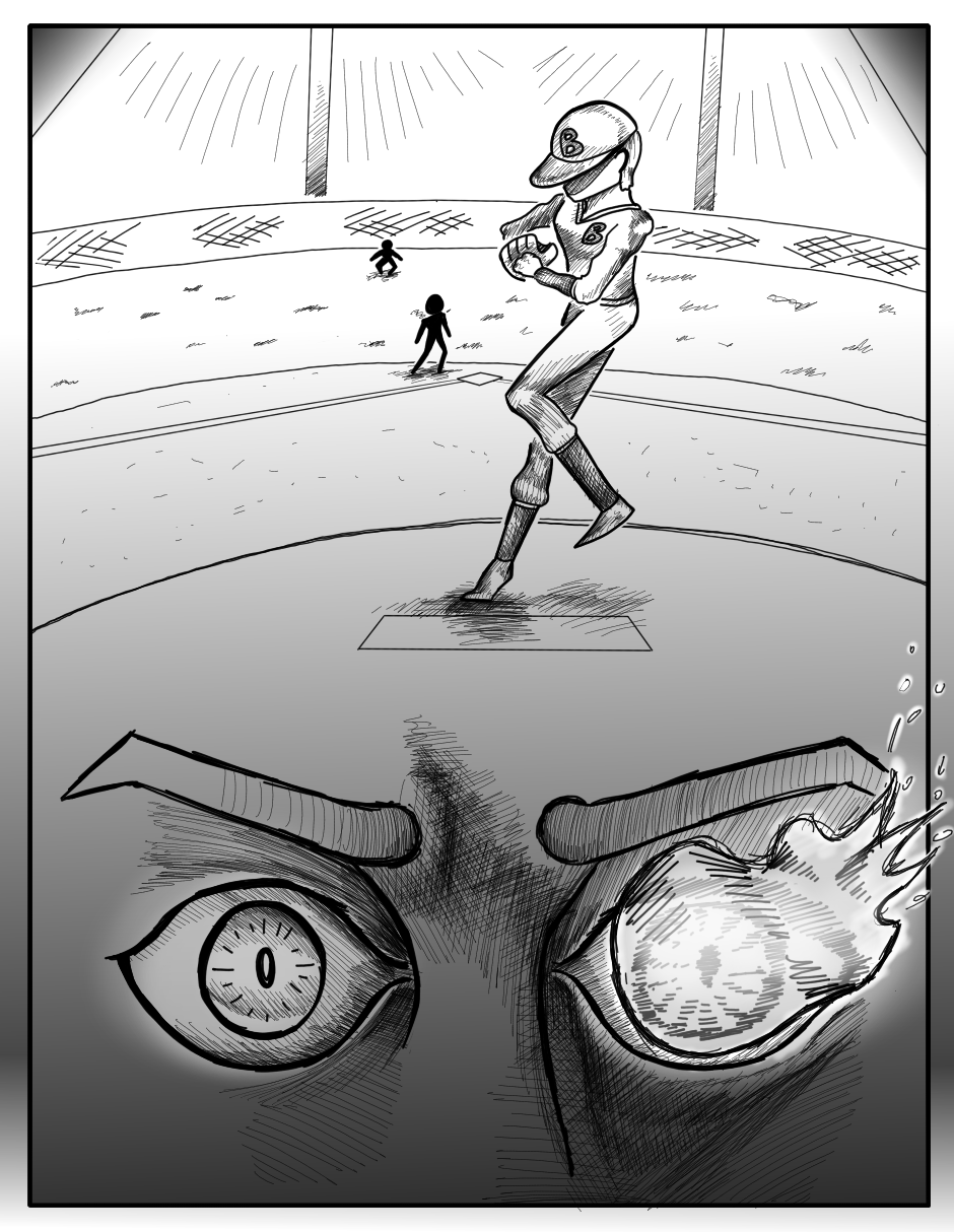 The original draft for this episode was more comedic, but I felt like that didn't really match the kind of tone this one should have. Like there was one page where Poppu wonders how the catcher is ok after catching a pitch like that twice, and when she turns to look at him he's shaking a lot. I thought it was pretty funny when I came up with it, but I realized it didn't really fit when I started drawing.