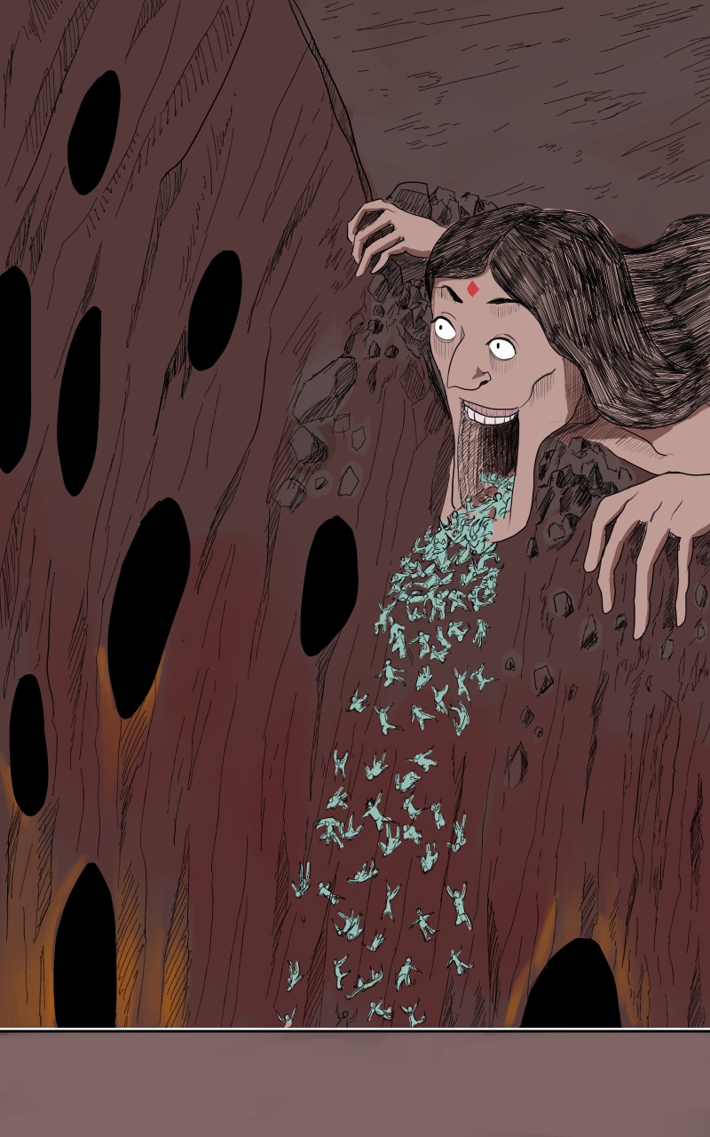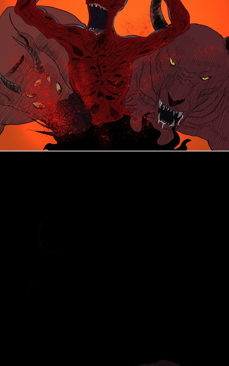 Al seguir avanzando en el camino por el infierno, se topa con toda una fauna demoniaca que devoraran a Cristo.