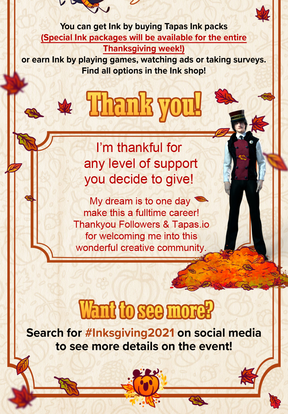 For Inksgiving! Thanks everyone for the continued support! Don't feel pressured to donate but added this incase you guys find interest. It's been a fun experience participating in all of these Tapas Events. :D