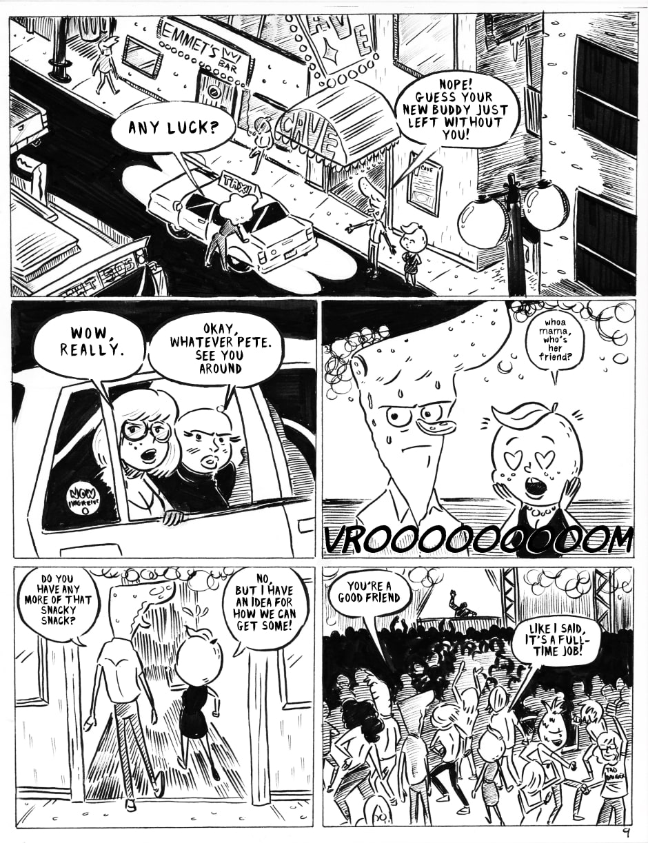 Pete and Gertie escape an awkward situation, and a new friendship is forged. That's it for PIZZA TIME for 2021! Stay tuned, there's plenty more to come in 2022- and thanks for reading!