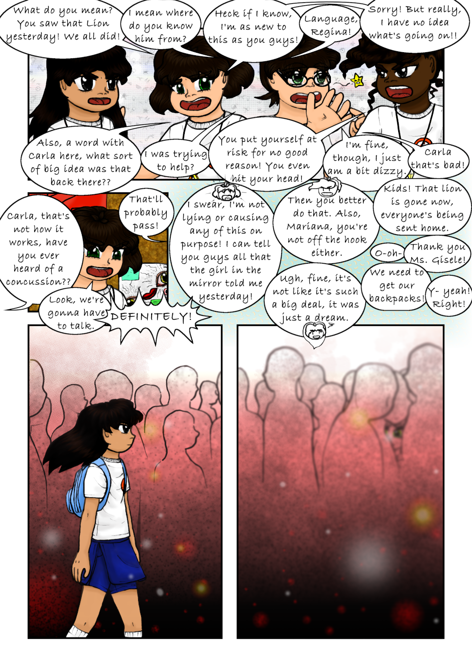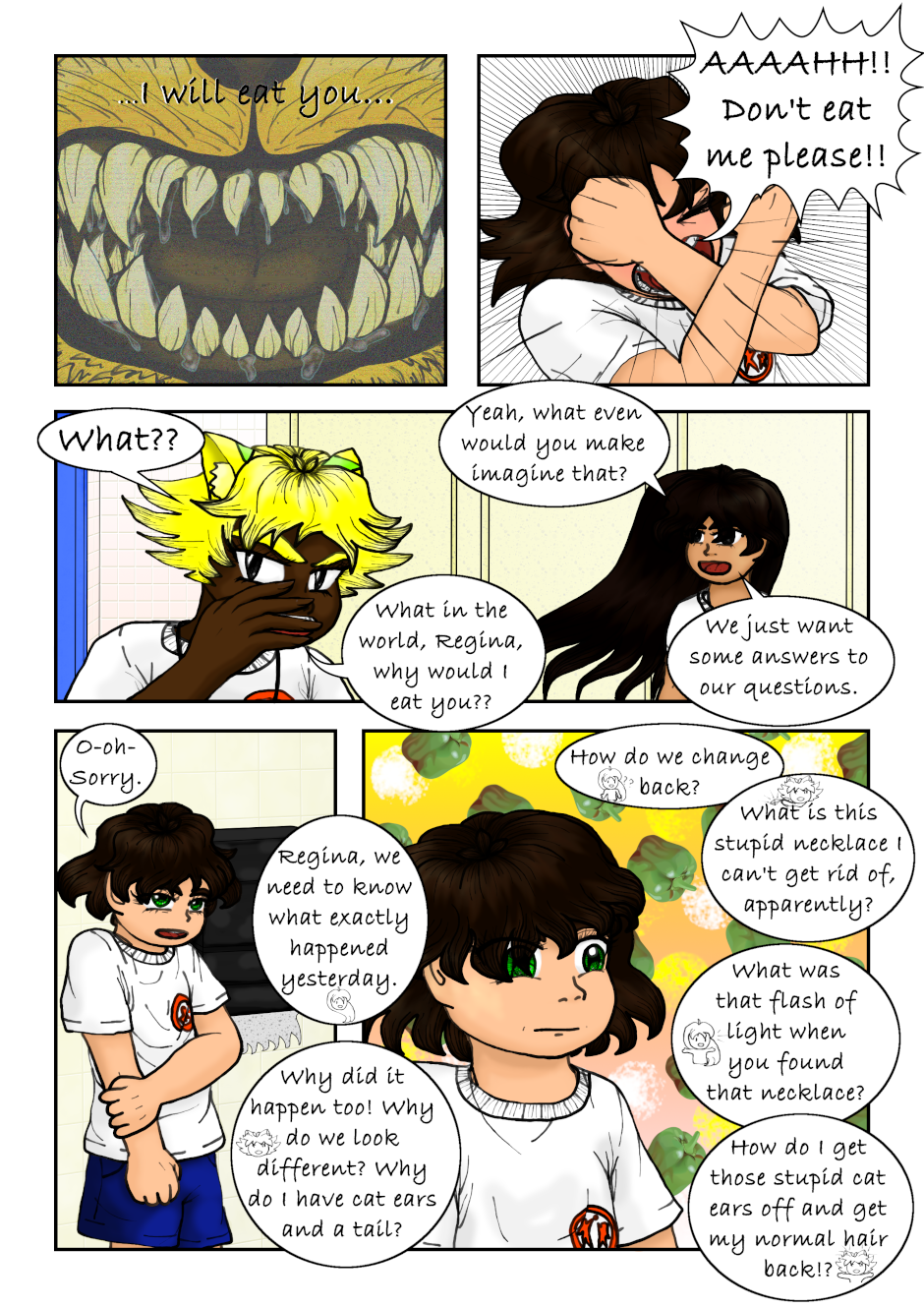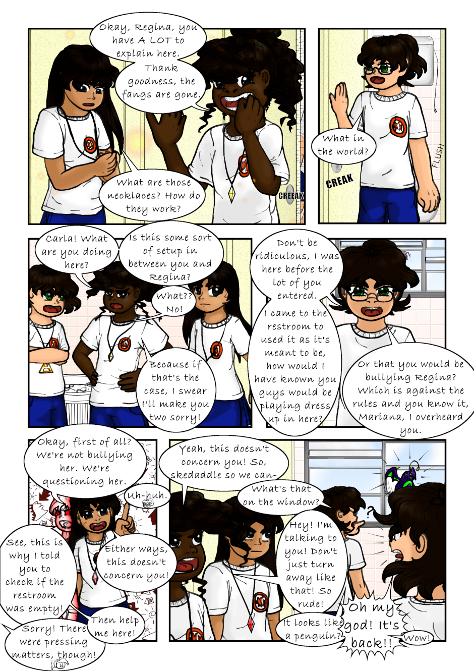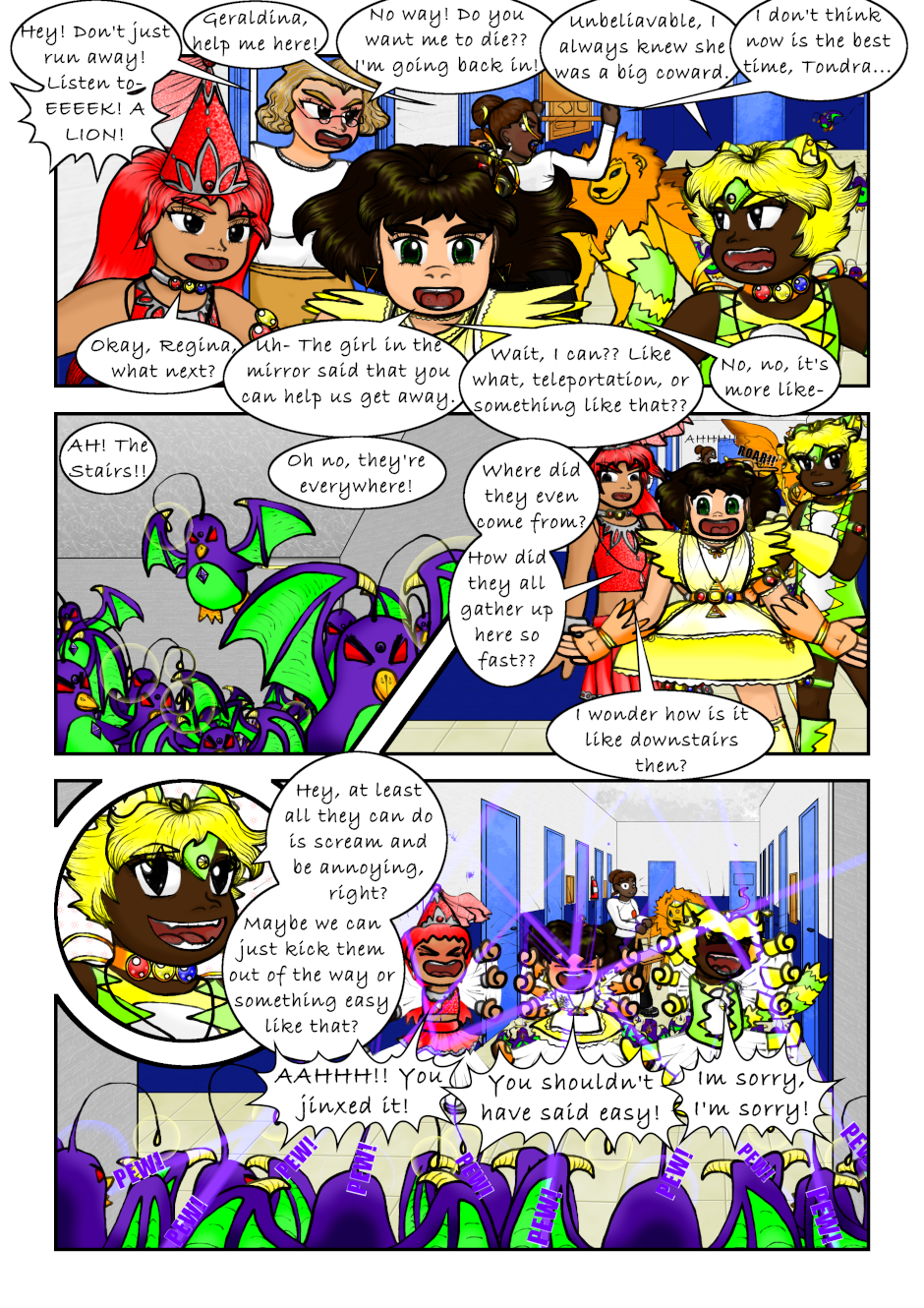 The Clairvoyant told Regina she has to seek the Air Necklace to guard it, and told her to find the Warriors. Regina accidentally found a magical necklace that made her and a couple of her classmates turn into magical girls. Also, a talking flying lion is after them. Not to mention Regina's reflection speaks to her now. What a mess, can anyone Regina, Mariana or Tondra what is going on?