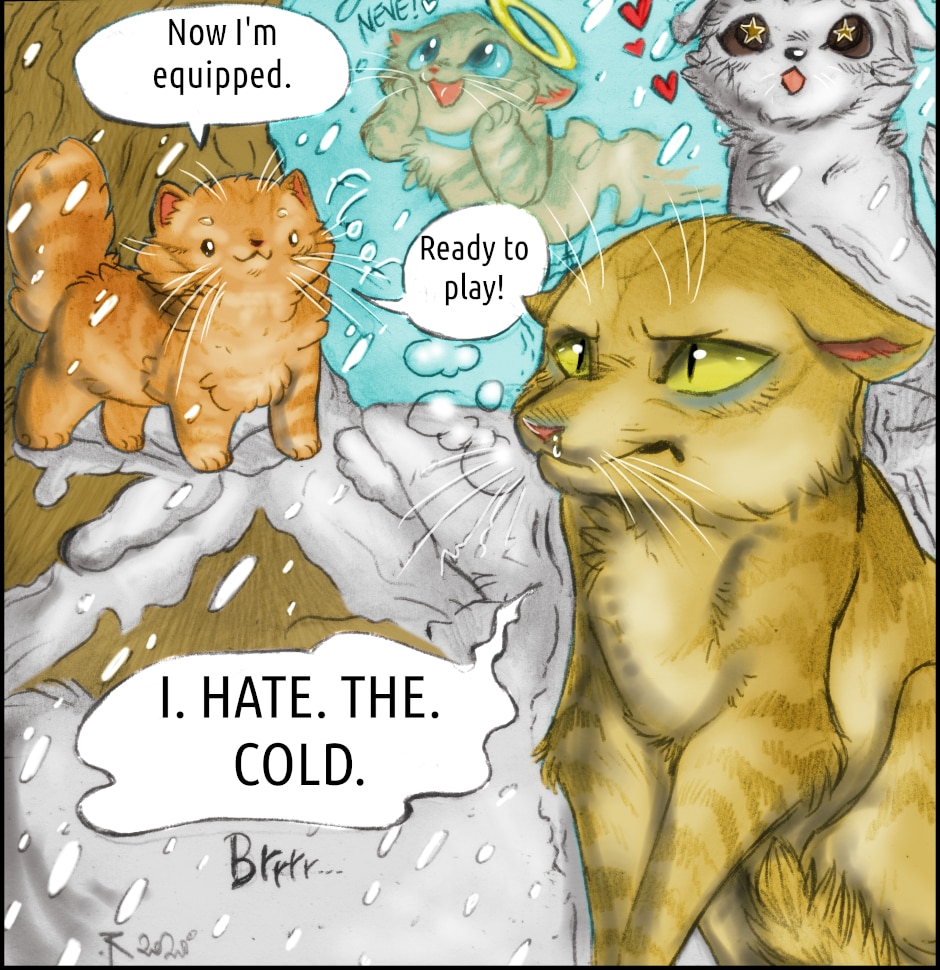 Ah, the snow! Winter has arrived... Lily has always loved winter: her fur gets longer, her undercoat thickens and she loves playing in the snow. Stelvio, on the other hand, is a chilly kitten... maybe it's better if he stays inside!