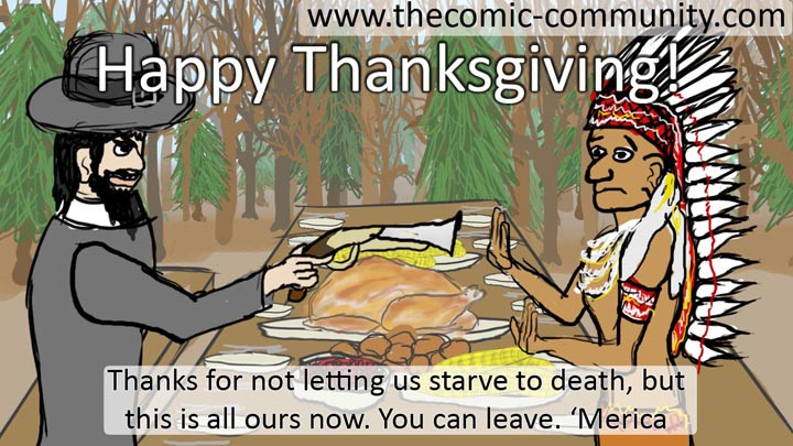 Happy thanksgiving from http://www.thecomic-community.com if you like what you see, be sure to check out our site, www.facebook.com/thecomiccom and the other Tapastic comics listed!