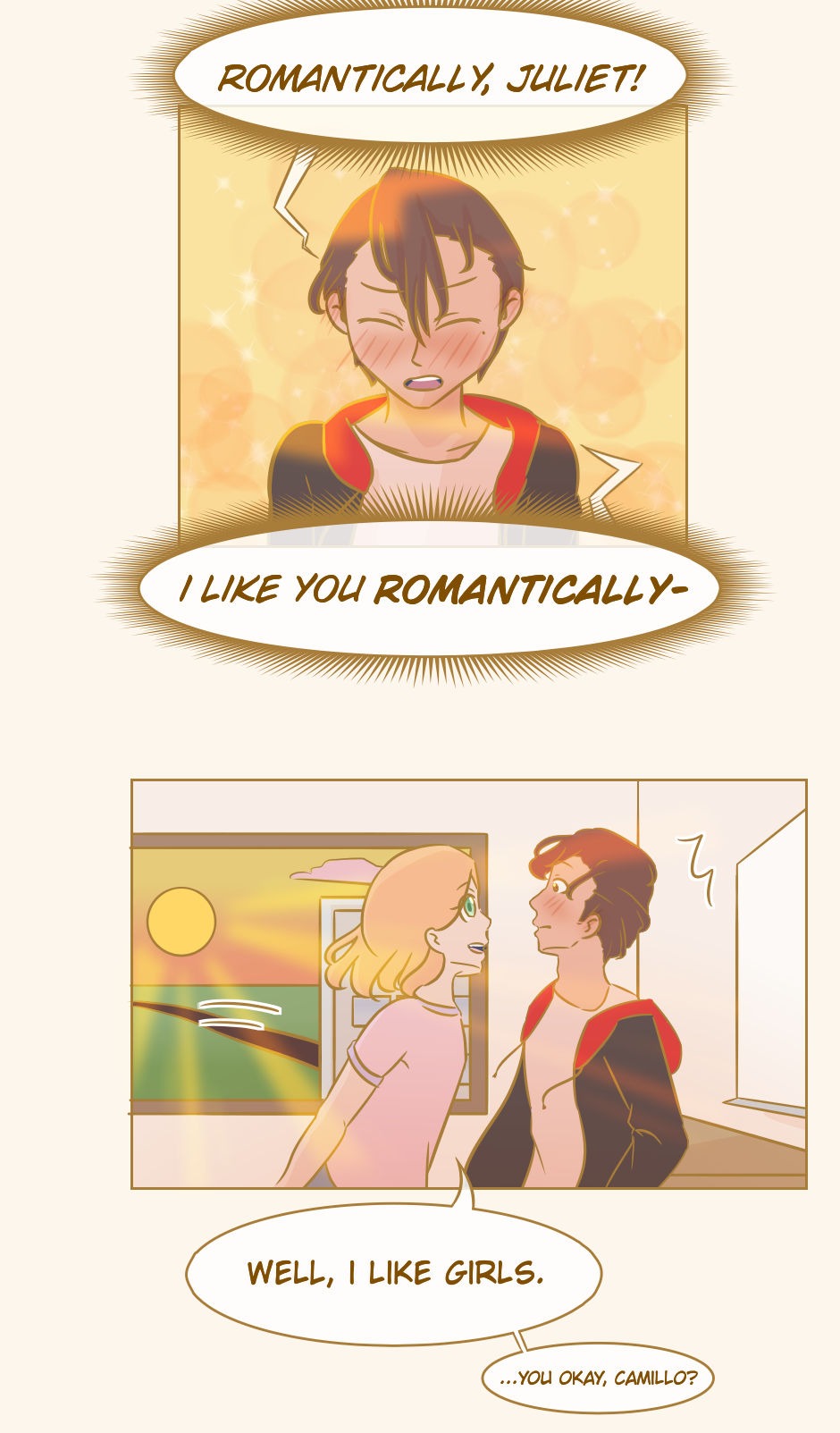 Juliet is one of the school's best athletes and one of the smartest. She's popular and easily gathers a crowd but is completely oblivious to it. Marie is more in love with reading stories than reading math problems but just about all her grades but English are tanking. She usually has Artemis to help her out, but recently felt Artemis becoming colder to her despite being friends since kindergarten.