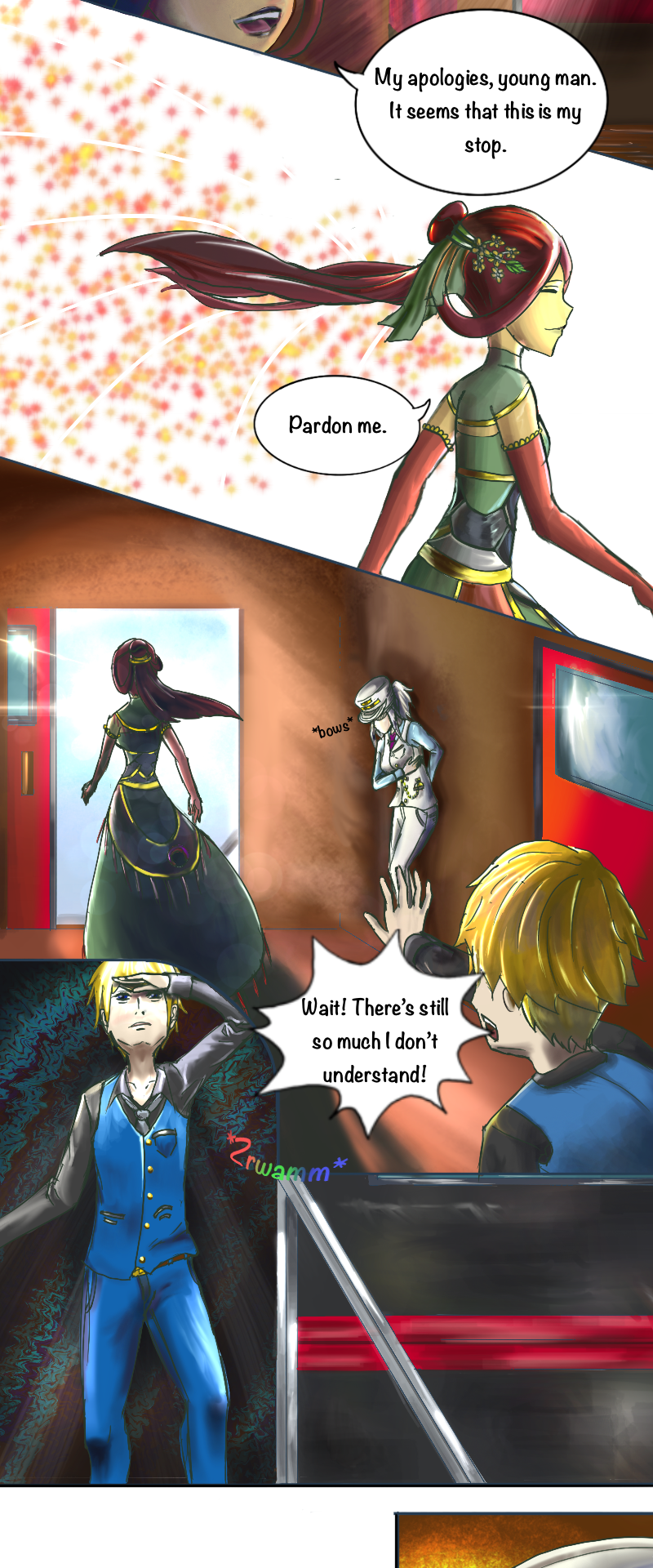 “We’re late.” “Late for what?” A young man searches for answers after awaking on a mysterious train. With fleeting memories, he finds himself face to face with an enigmatic train conductor and hoisted to fantastical worlds as he discovers the meaning of his journey and the strange heart-shaped pendant he awoke with. What will he find at his stop after crossing a hundred worlds?