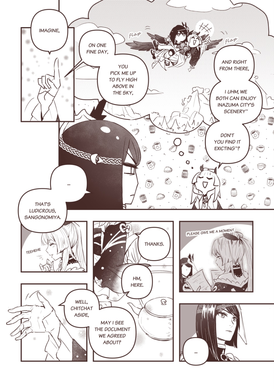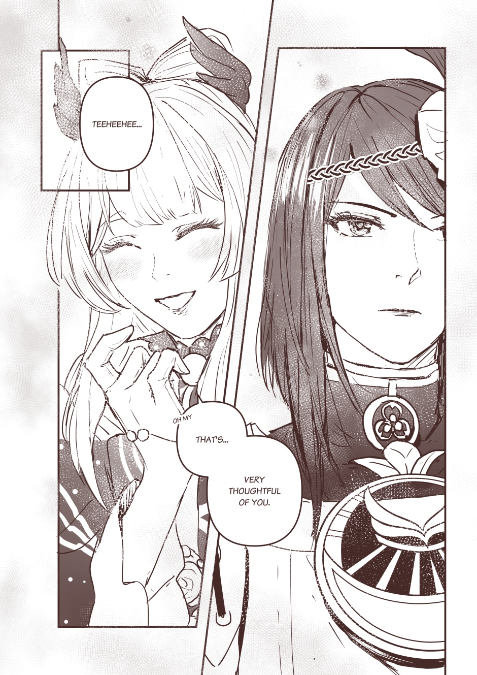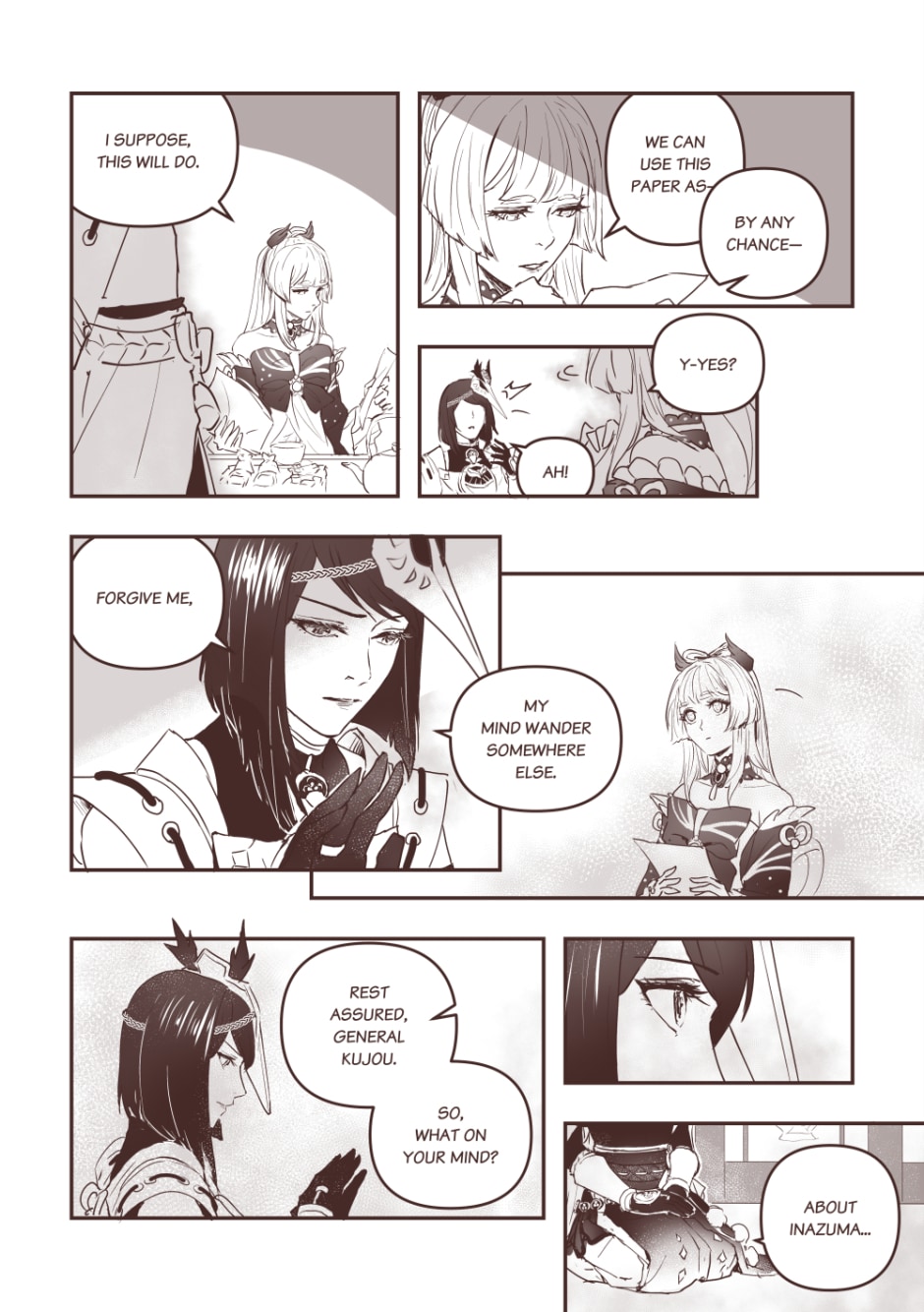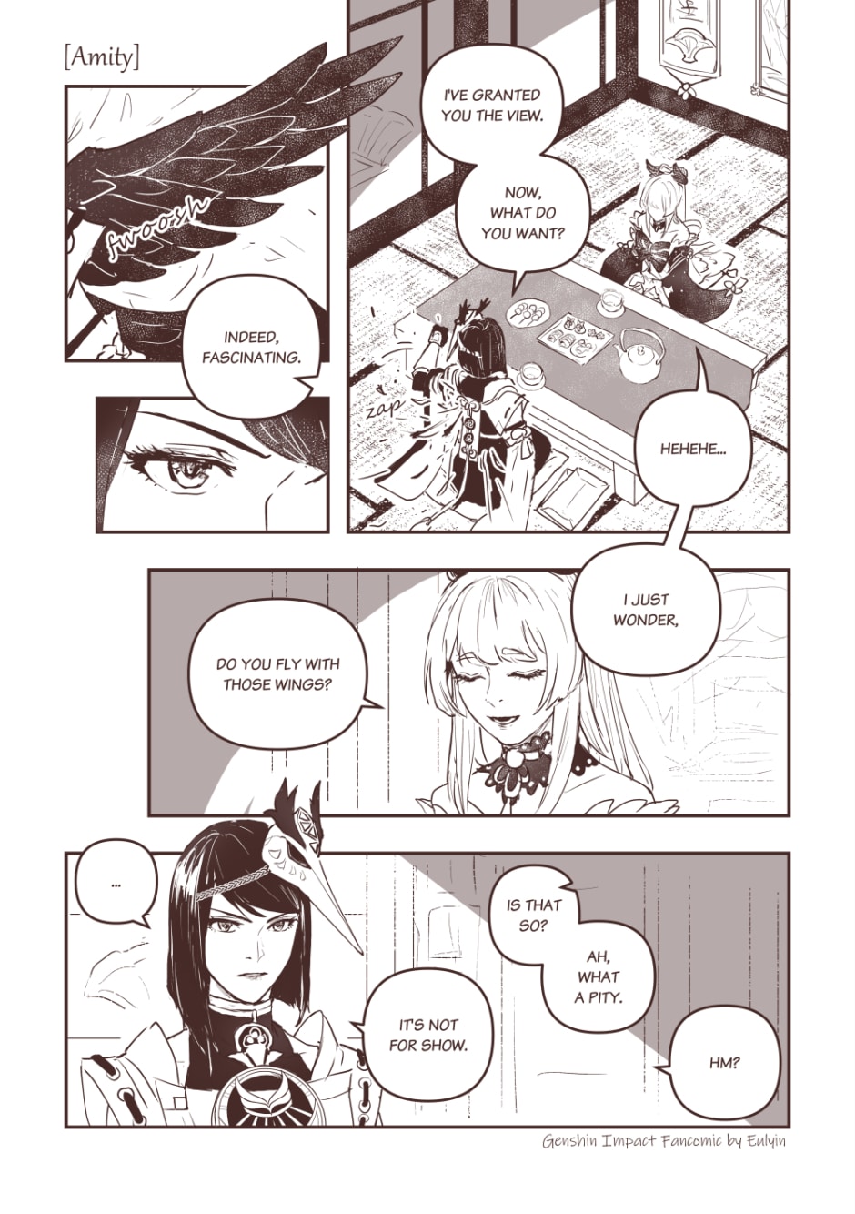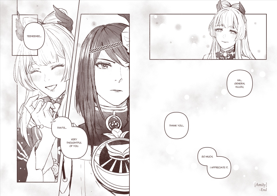 Peace has been achieved yet there's still something lingering. Thank you for reading, as usual, Genshin's details killed me perfectly _(´ཀ`」 ∠)_ -- I have bonus page here: https://twitter.com/eulyin/status/1449368149795561476?s=20