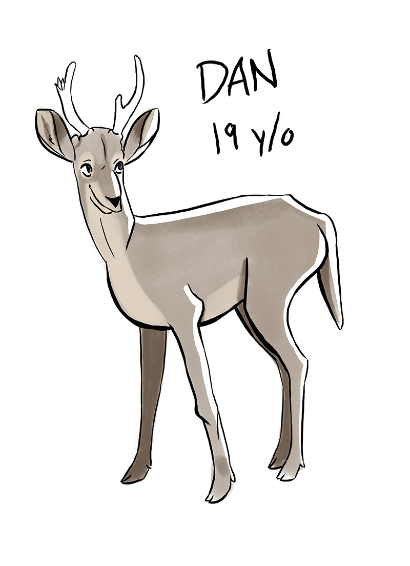 Here's Dan's initial character design! It varies from here to the actual comic, but the idea remains the same. Also, the comic updates on Tuesdays and Fridays, just so you know!