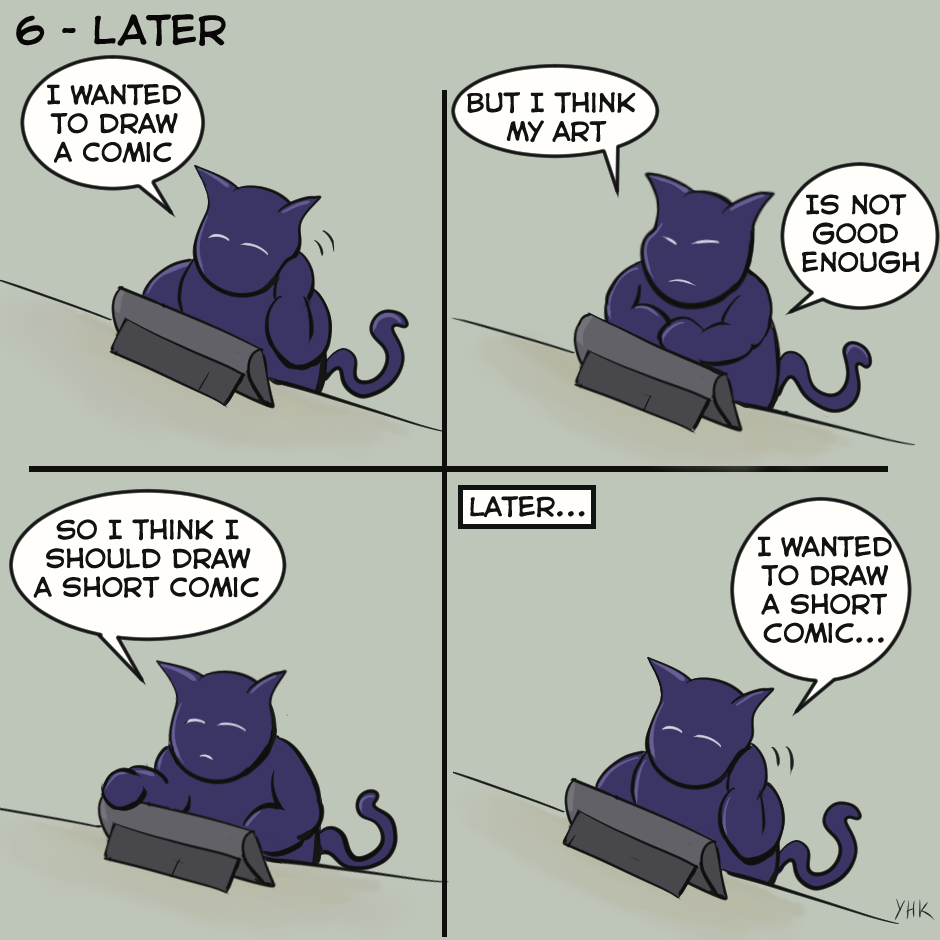 How I finally decided for a short comic with simple drawing first... (^w^ )