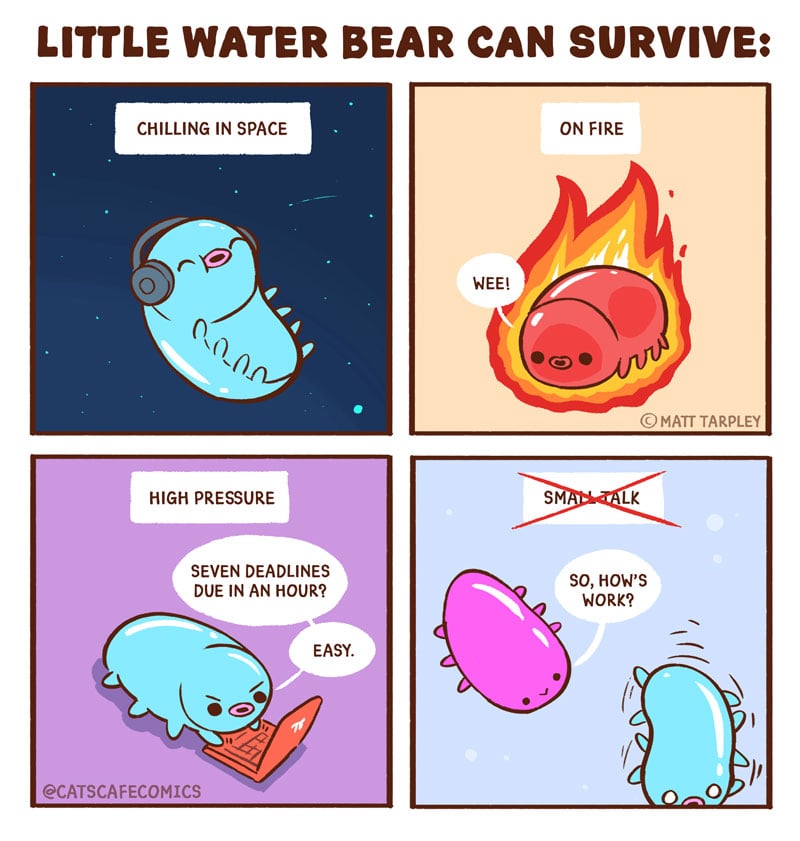 Cat's Cafe is a wholesome comic about the daily lives of cute animals! Join Cat, Penguin, and Rabbit as they go about their day and bring a smile to your face. Grab a cup of coffee (or tea!) and enjoy!